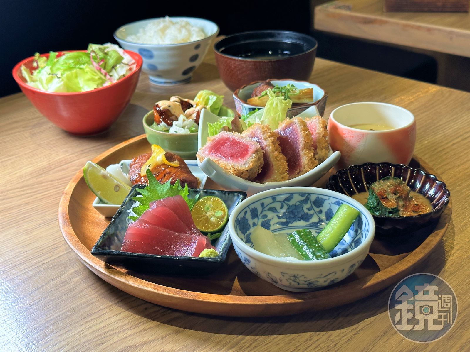 鳥丈爐端燒每年都會與鮪魚季同步,推出限定料理。今年料理長特地挑選大目鮪魚和黃鰭鮪,做成一魚5吃的個人午間套餐「鮪魚滿腹御膳」,要讓鮪魚控吃好吃滿。