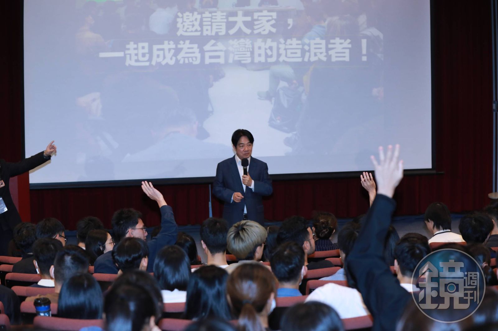 學生在對談期間準備的提問也相當辛辣猛烈,各個有備而來,除了兩岸、台獨議題,甚至問到民進黨派系內鬥、論文爭議、排黑條款,以及他所稱的務實台獨主張,讓賴清德笑說好像大家都拎著棒子上場想把他一棒打昏。