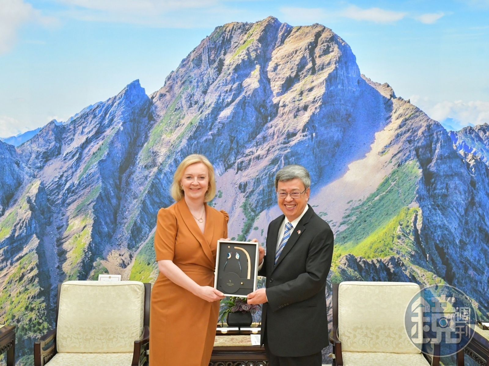 英國下議員特拉斯於16日至20日訪問台灣,是繼瑪格莉特柴契爾後,第2位訪問台灣的英國前首相,行政院長陳建仁昨接見特拉斯,感謝英國在疫情期間公開支持台灣參與WHA,也提到英國在特拉斯擔任國貿部長任內申請加入CPTPP,盼英國入會後支持台灣加入,為台灣和所有成員國製造雙贏。