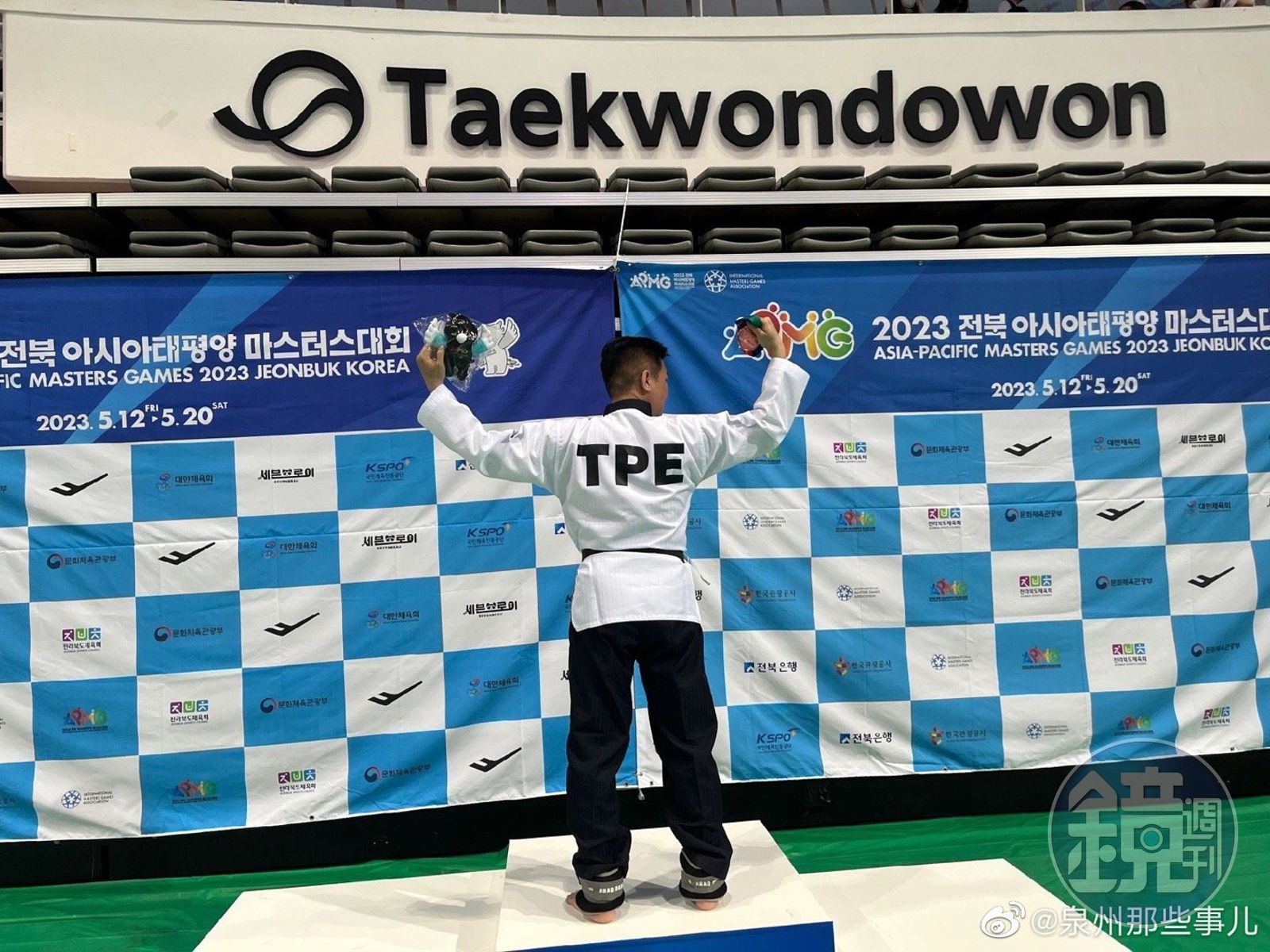 來自台灣的跆拳道選手李東憲日前前往南韓參賽2023亞太壯年運動會,奪銅後卻在頒獎時高舉五星旗,然而其穿著的道服背後寫的是代表中華台北的「TPE」。消息傳到微博上後讓許多中國網友集體大讚「這才是真正的中國人」「中華好兒郎,祝賀!」等。