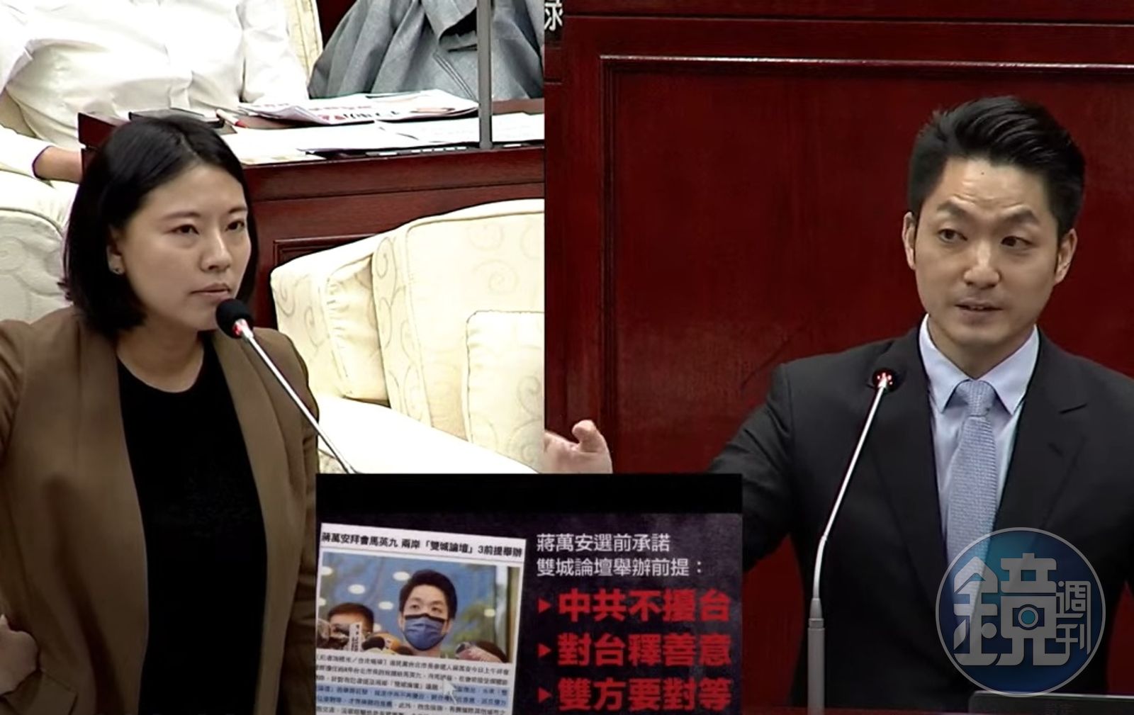 何孟樺劈頭就問蔣萬安,是否堅定實行選前對台北市民的承諾,蔣萬安給出肯定答覆後,何指出蔣選前曾承諾續辦雙城論壇的前提是「共機不擾台」,可如今共機擾台已成日常,質疑蔣萬安被棄選前承諾。