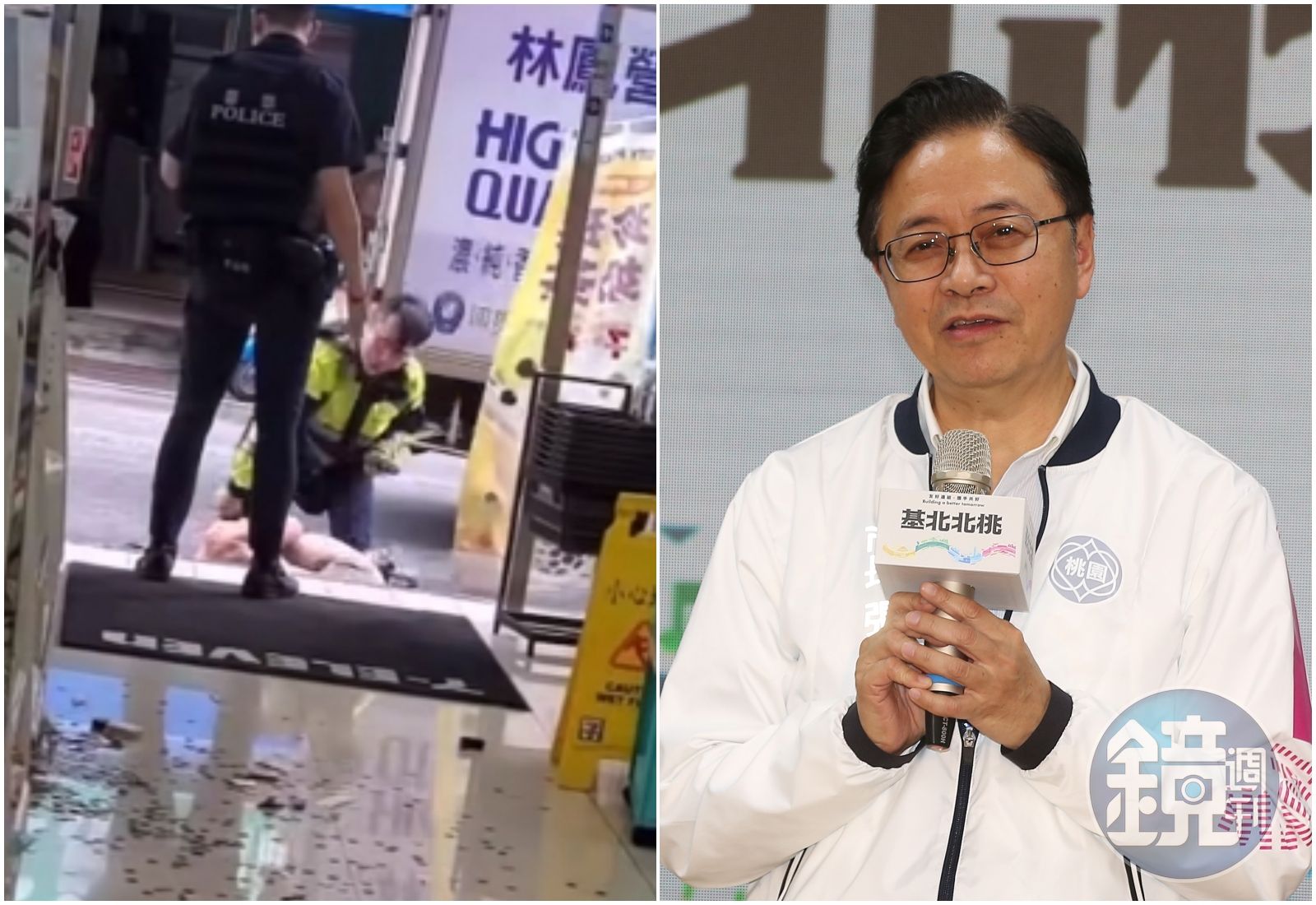 桃園市長張善政今在市議會受訪被問及該名員警的行為是否恰當,張善政表示,他認為員警當時心急,一來是想要趕快制伏當時失控的民眾,二則是他也受到言語的刺激,所以有些過當的行為,「我們中壢、桃園警方已經對這個當事人做出懲處,我想大概就到此為止。」