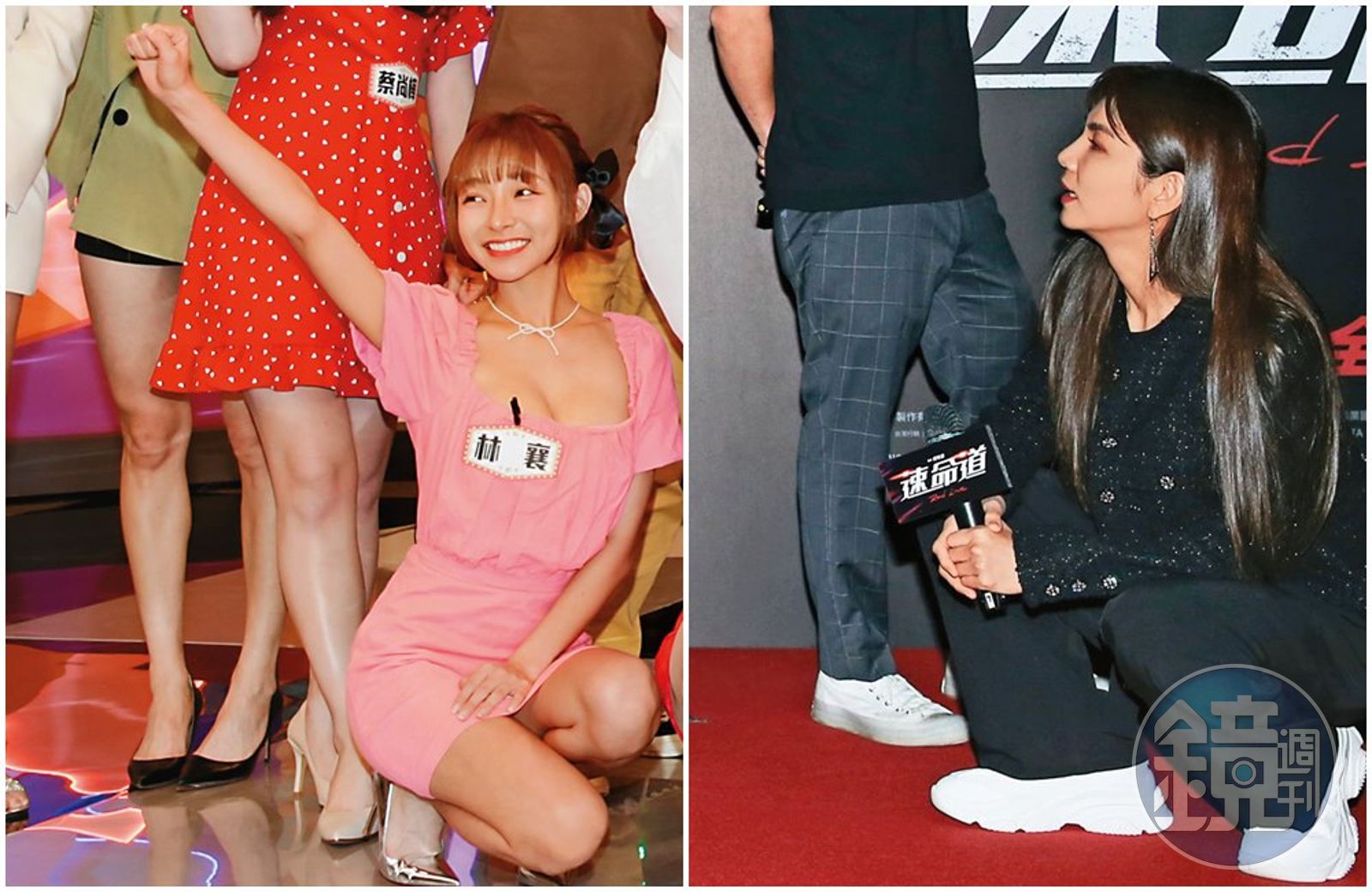 啦啦隊女神林襄出席(左圖)《天才衝衝衝》17週年慶記者會,左手還懂得壓裙襬防走光,可惡!(誤)/Ella(右圖)出席電影《速命道》記者會,看這跪姿…請容我稱一聲「大哥」。(拱手作揖)發布時間:2023.05.28 05:58 臺北時間