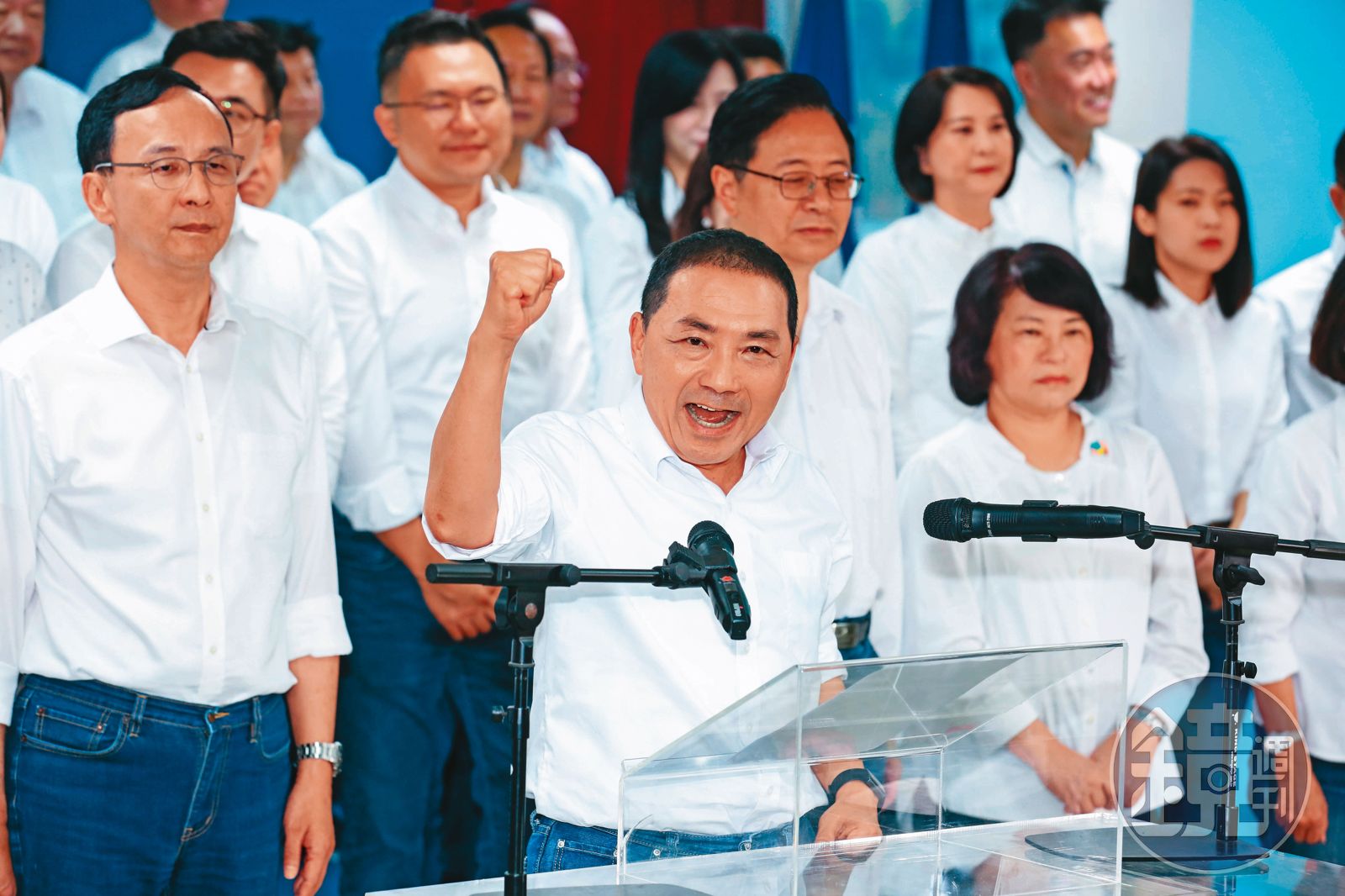 新北市長侯友宜甫獲國民黨徵召參戰2024年總統大選,20日立刻進入戰鬥模式,上午在中央黨部與黨主席朱立倫、黨籍縣市長及立委提名人舉辦首場誓師大會,當晚再回新北三重出席網路直播節目,侯友宜被現場民眾問到,如何以一句話說服選民把票投給他?他當場用台語宣示:「用我的性命,顧全台灣的安全!」一展他的鐵漢形象。