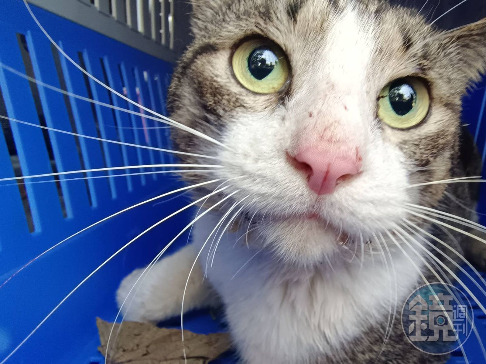 動保處救援人員抵達現場後,發現胖虎斑貓頭下腳上、尾巴卡在圍牆的防護鐵絲網上,隨即利用捕貓網先將貓用網圍住,避免因掙扎而造成二次傷害,並配合營區人員使用油壓剪將鐵絲剪斷,將貓連同剪下鐵絲放入運輸籠內,隨即送往動保處醫療中心進行醫療救治。