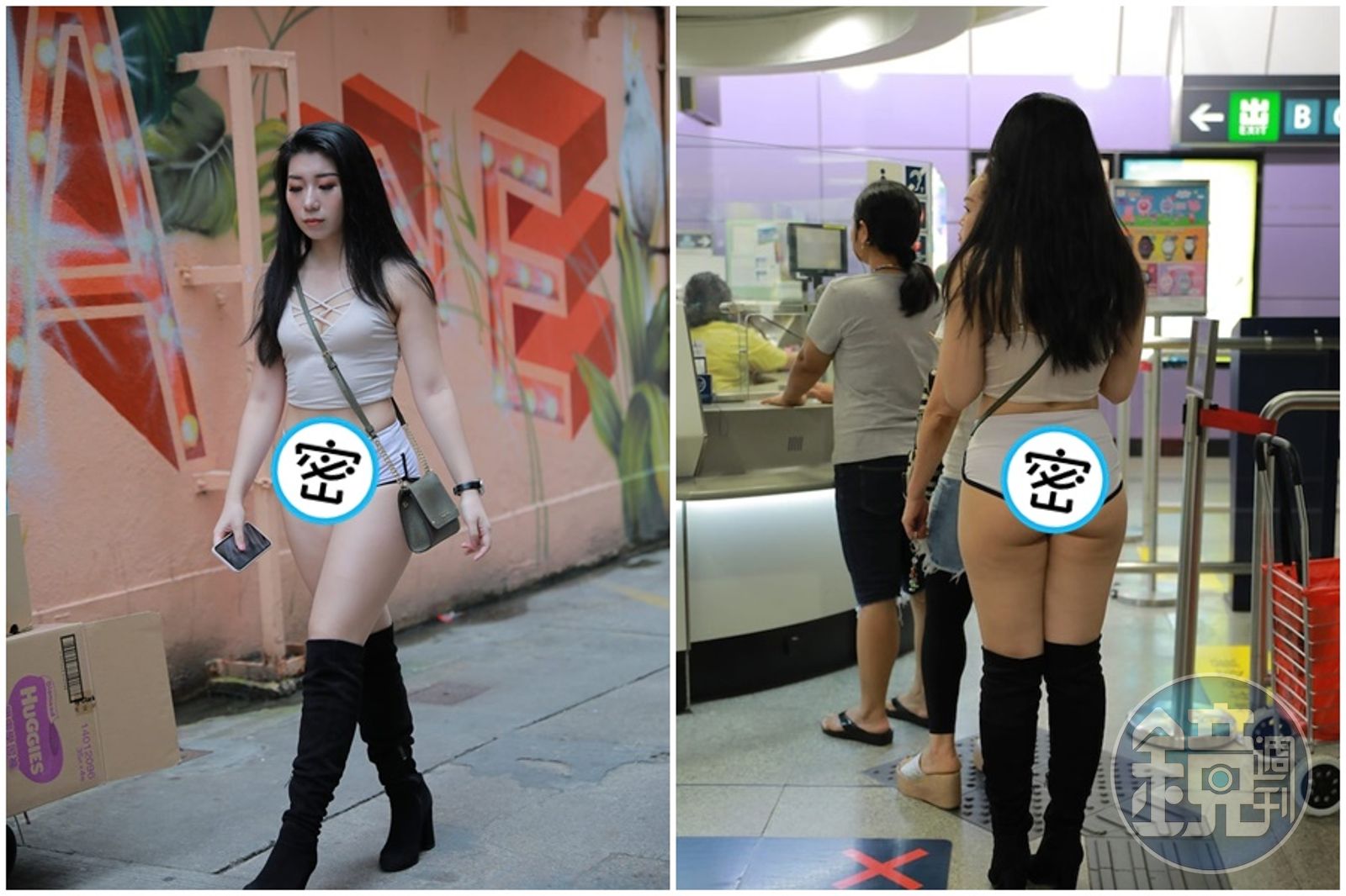 近日一名長髮正妹身穿辣裝,掀起討論。(翻攝自hk01)只見正妹在地鐵不同站別打卡拍照,一轉身超短熱褲還掉出半顆蜜桃臀,走在街上令人側目,照片一曝光,更讓大票網友看得血脈賁張。