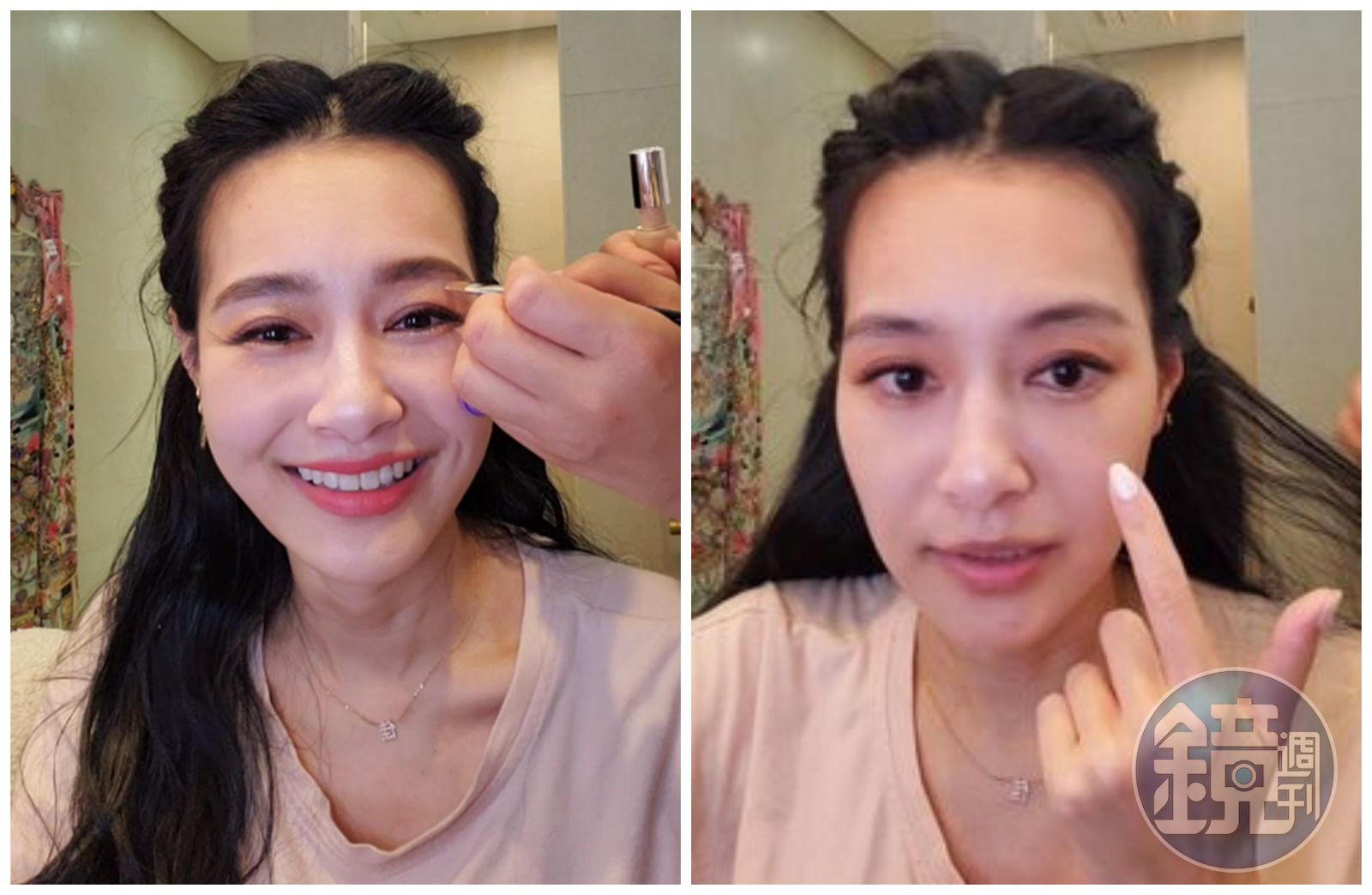 王思佳在化妝過程中也一度自嘲:「我人生真的很多停損點,都不能使勁化。」坦言因為本身有臥蠶,所以不能刻意化,只能在眼下稍微打亮:她說:「只能一點點,不能多喔!會很假!會覺得妝很濃。」
