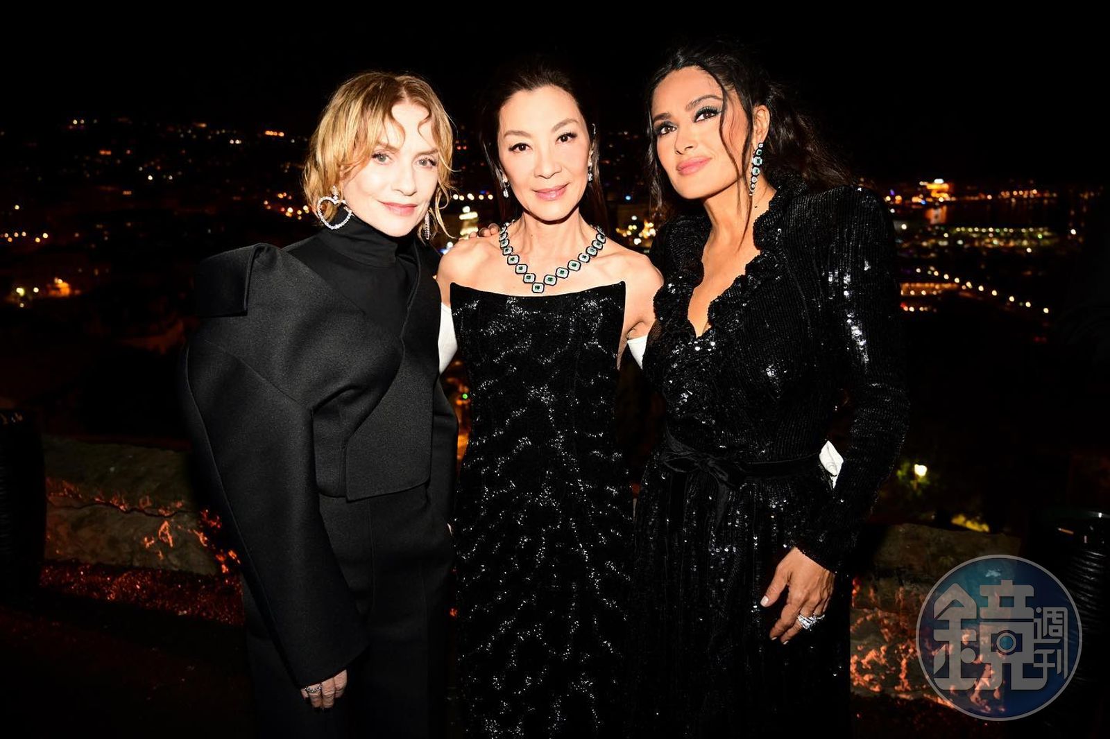 而楊紫瓊之後也在社群公開了她與伊莎貝雨蓓及莎瑪海耶克同框的合影,比起3人的影壇地位,伊莎貝雨蓓是2屆坎城影后與2屆威尼斯影后,也是2022年柏林影展榮譽金熊獎得主,影壇地位早已備受肯定,不過畢竟楊紫瓊是這場晚宴的主嘉賓,也是新科奧斯卡影后,C位自然由楊紫瓊所佔,伊莎貝雨蓓與莎瑪海耶克分居左右映襯楊紫瓊。
