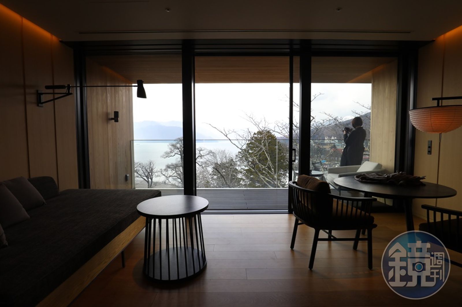 「日光麗思卡爾頓酒店」於2020年5月22日開幕,建築位在中禪寺湖的東側,外觀灰黑色澤低調沉穩,自然融入在湖光山色中。一入接待廊道,能見到午後斜照入內的光線,室內空間大量使用淺色木質,搭配上陽光,十分溫暖明亮。進入客房內,也能見到巧妙運用玻璃或隔柵納入光線的設計,即使身處室內也能感受光影隨時間變化,正好呼應「日光」一詞。客房有山景、庭園、湖景等五種房型,共94間房,風格皆優雅別緻。