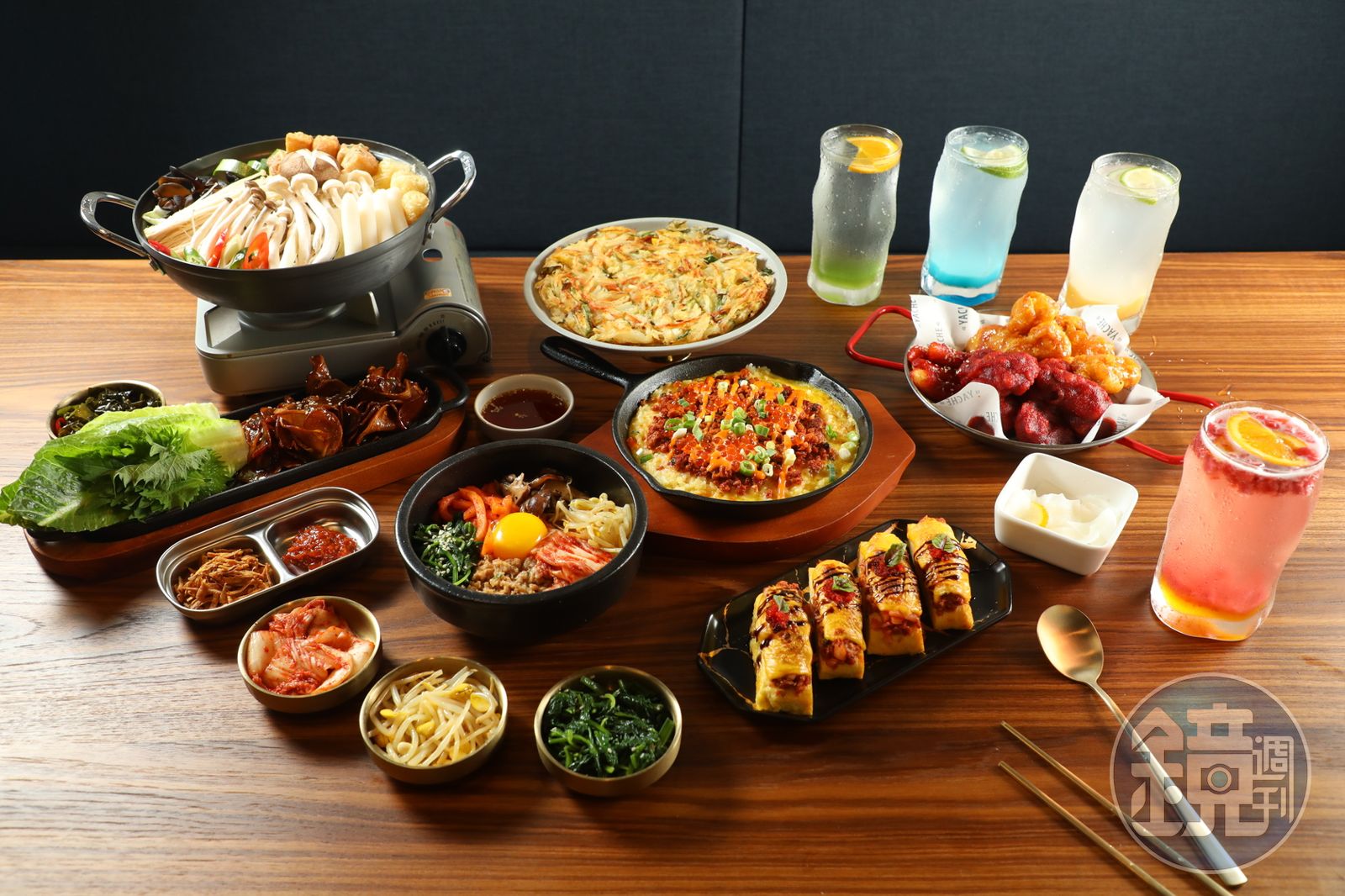 開幕主推的「黑蒜雪濃嫩豆腐鍋」以豆漿和植物奶調和作為湯頭,加入味道鮮明的黑蒜頭,再放入豆腐、香菇、高麗菜、櫛瓜一起燉煮,帶點恰到好處黑蒜辣味,入口香醇濃郁。其餘鍋類像是「馬鈴薯排骨嫩豆腐鍋」「安東大醬嫩豆腐鍋」「辣KIMCHI起司部隊鍋」「YACHE番茄肉醬嫩豆腐鍋」多種韓國口味的選擇。