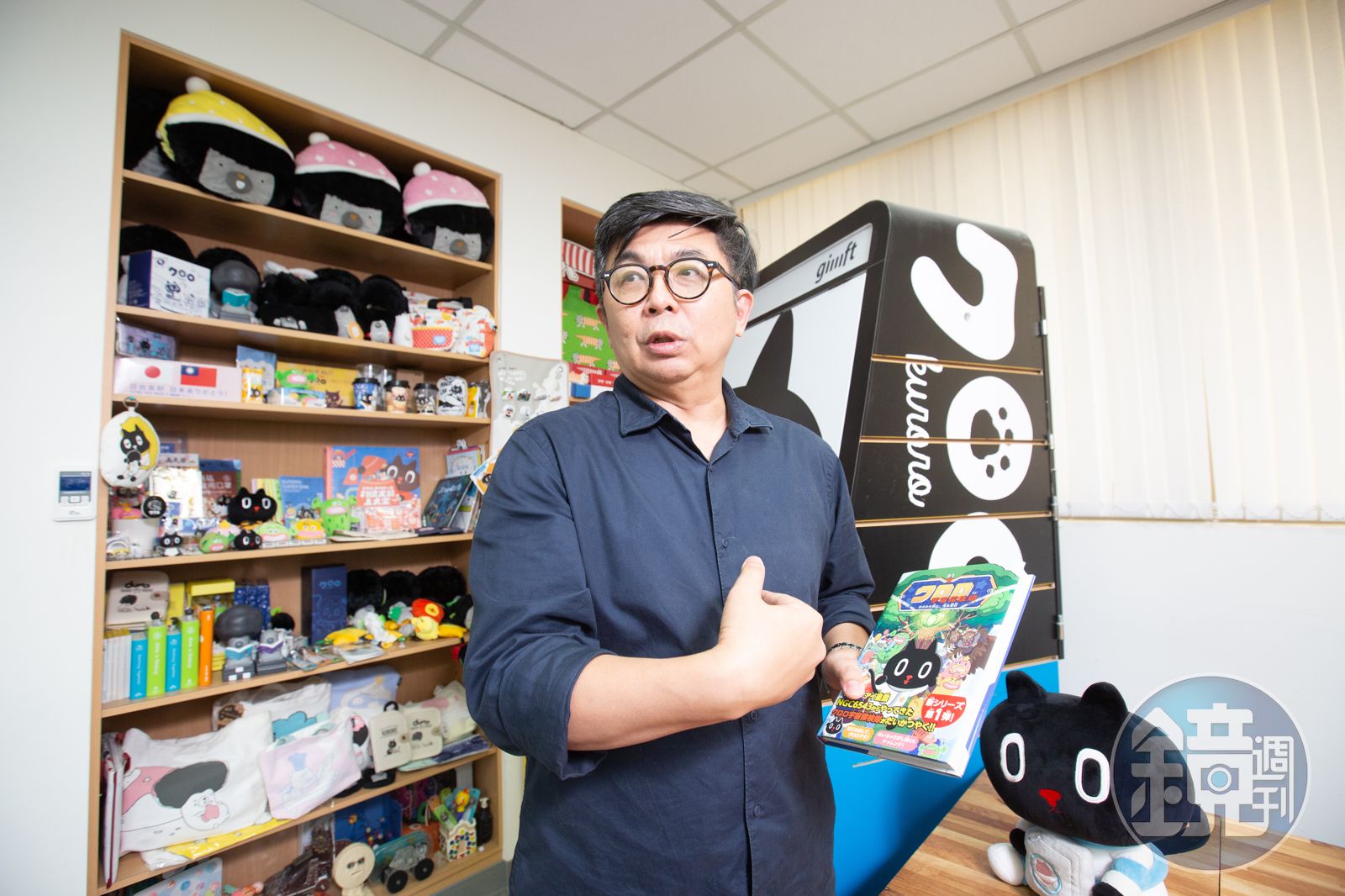 他也點出,台灣發展角色IP業的困境為「橫向根本沒辦法連結,日本只要手一揮,就能合作。」他分析,「日本的玩具產業跟角色IP產業連結很直接,衍生品開發幾乎是一開始企劃就全部都討論好了,台灣為什麼不能這樣做,因為台灣以前只有代工,一直用價格當作競爭優勢,常被砍得沒有毛利,就不敢做原創啊!不敢投入新的開發,對於賺來的錢每一分就會很謹慎,因為都是生產財,所以為什麼不願意付授權金,這是台灣角色產業能不能好好發展一個很重要的關鍵。」