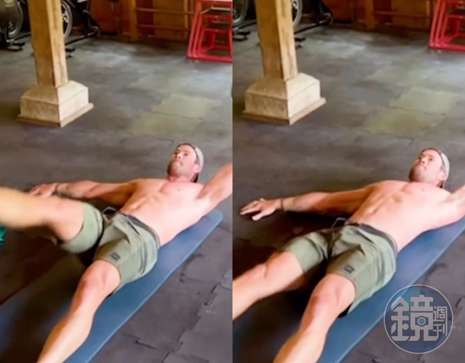 克里斯漢斯沃在家運動的短片,意外讓網友歪樓。(翻攝自Chris Hemsworth官方Instagram)發布時間:2023.05.31 11:12 臺北時間