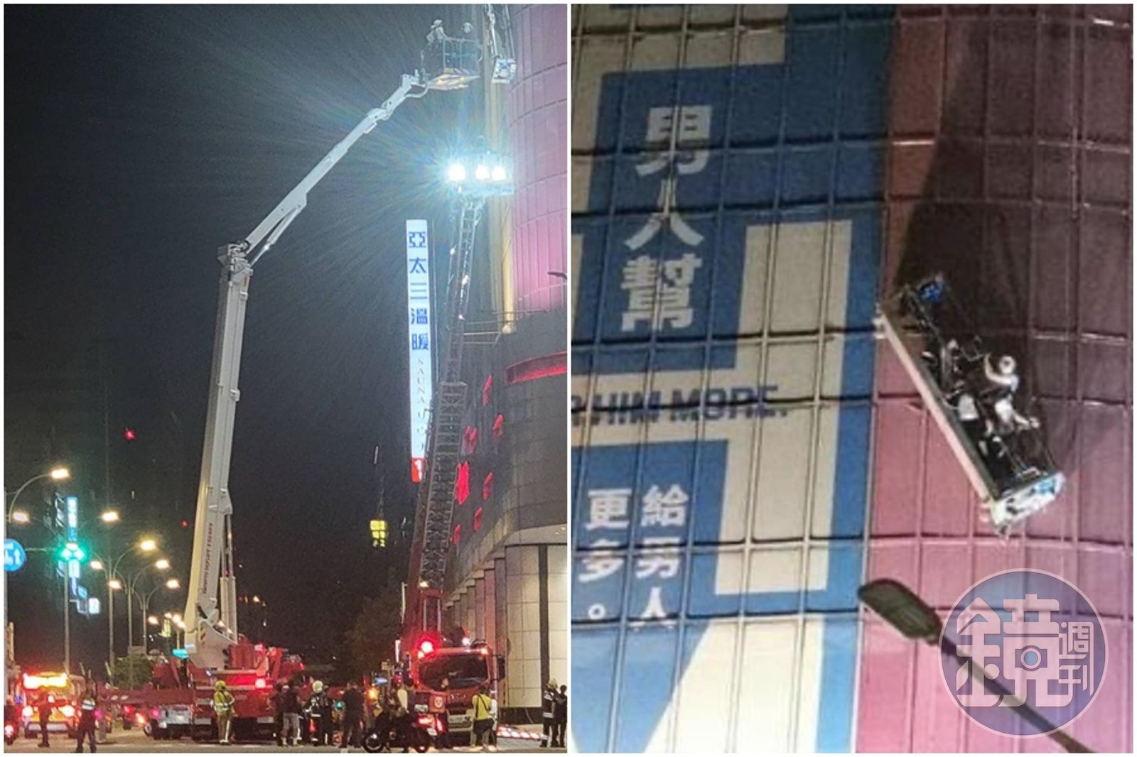 北市環亞大樓外牆3工人受困空中 吊籠傾斜驚險畫面曝光