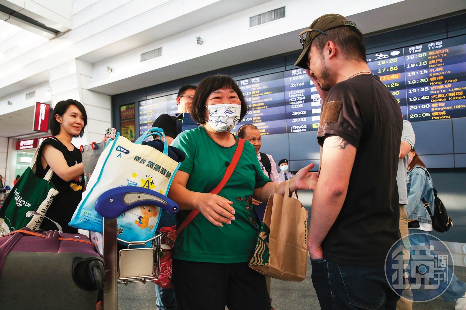 5月28日,Cai的母親自國外返國,我們與他一同赴機場接機,母親推著行李出關,他迎上前,抱住媽媽。