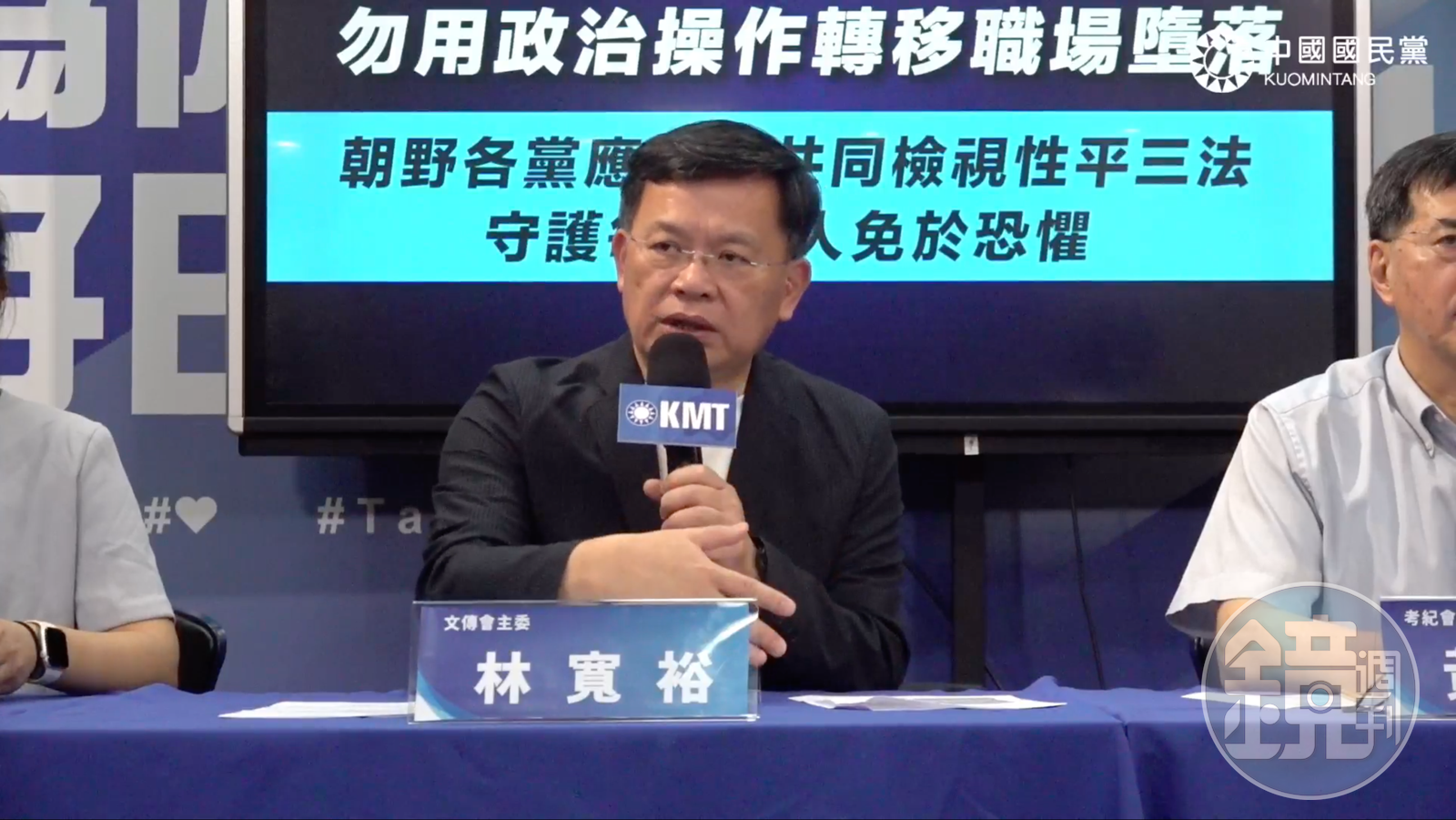 前花蓮縣長、現立委傅崐萁日前遭控性騷、強吻,今國民黨智庫特約副研究員與前《端傳媒》評論總監的資深媒體人曾柏文也被多名作家和記者指控性騷。而國民黨文傳會今召開性平記者會,強調會以最高標準捍衛婦女權益,也說明黨內性平機制。