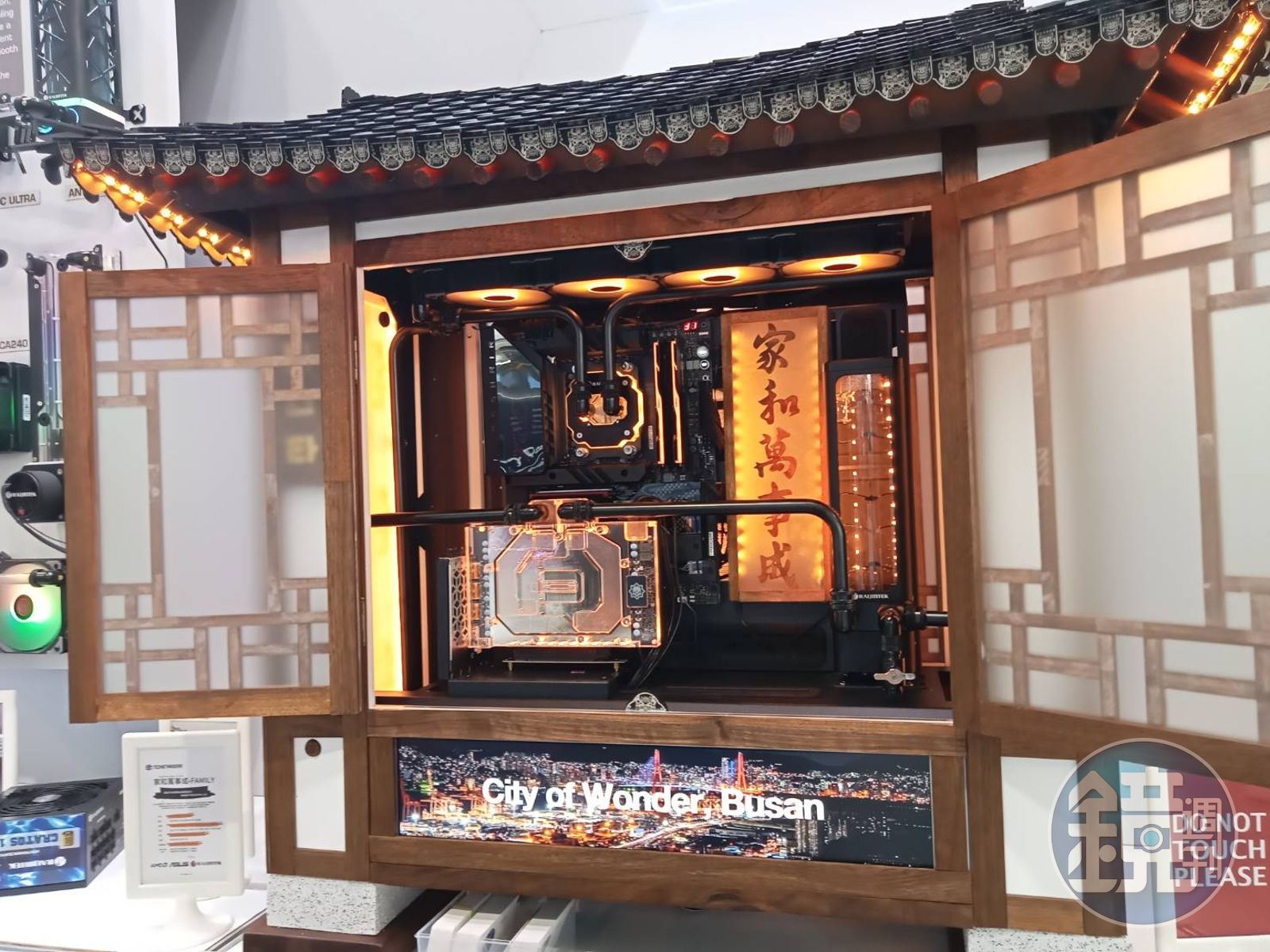 不過,主機內的散熱改向水冷,外觀也可以很Cool,透過客製打造屬於個人風格或符合當地設計的外觀,仔細看這台韓屋造型水冷主機,裡面還刻有「家和萬事成」五個漢字,代表韓國相當重視家庭觀念。