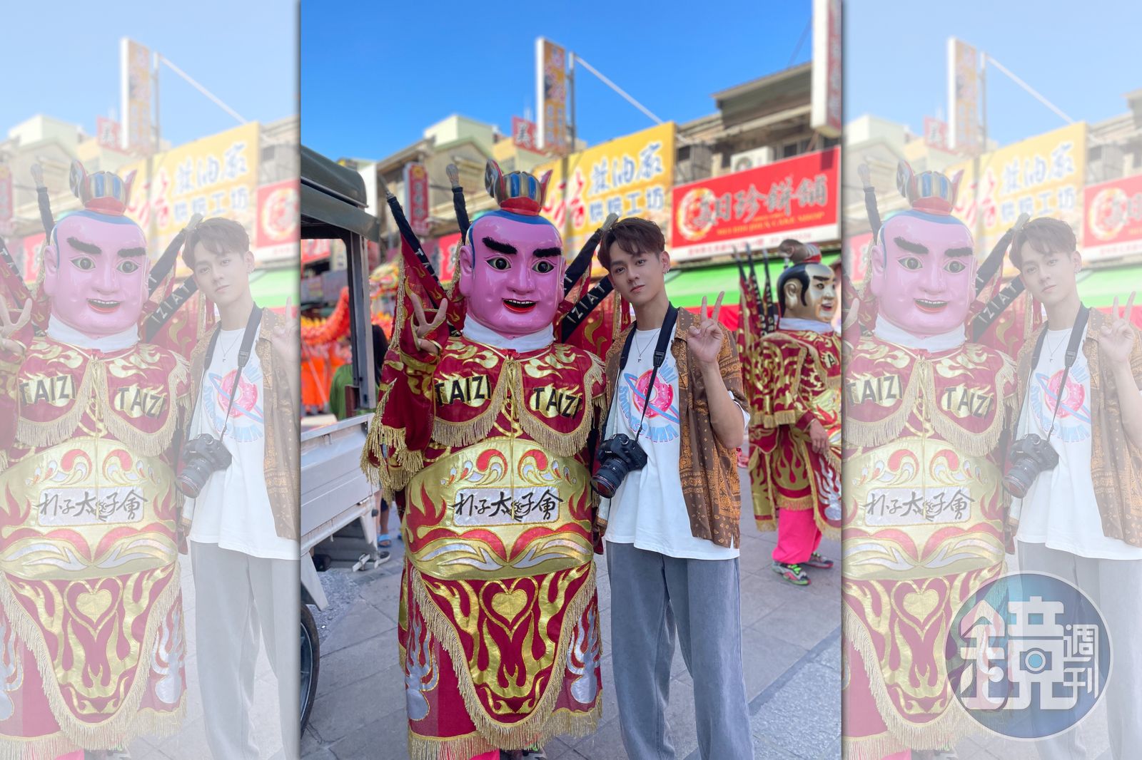 為了拍攝短片大賽的形象影片,洪暐哲在主辦單位精心的安排下,徹底體驗了台灣宮廟文化之美,因為拍攝期間適逢北港媽祖遶境活動,不僅體驗了炸炮及藝閣遊行領平安糖外, 但對他而言最特別的還是『電音三太子』 洪暐哲驚訝地說:「我真的沒想到電音三太子這麼厲害哎!不僅可以跳舞,印象最深刻的還是他們騎著風火輪跑過來跟我擊掌,這也太酷了!而且北港好吃又好玩,美食又便宜,我一早起床就點了在地人說必吃的麵線糊跟油飯,麵線糊一定要加蛋,真的太好吃了!」