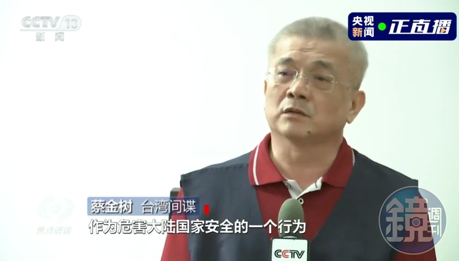 中國官媒《央視》於2020年釋出蔡金樹道歉影片,蔡金樹在影片中自稱被情報局利用,做出危害中國大陸國家安全的行為,「這是始料未及,也是很後悔的地方」。