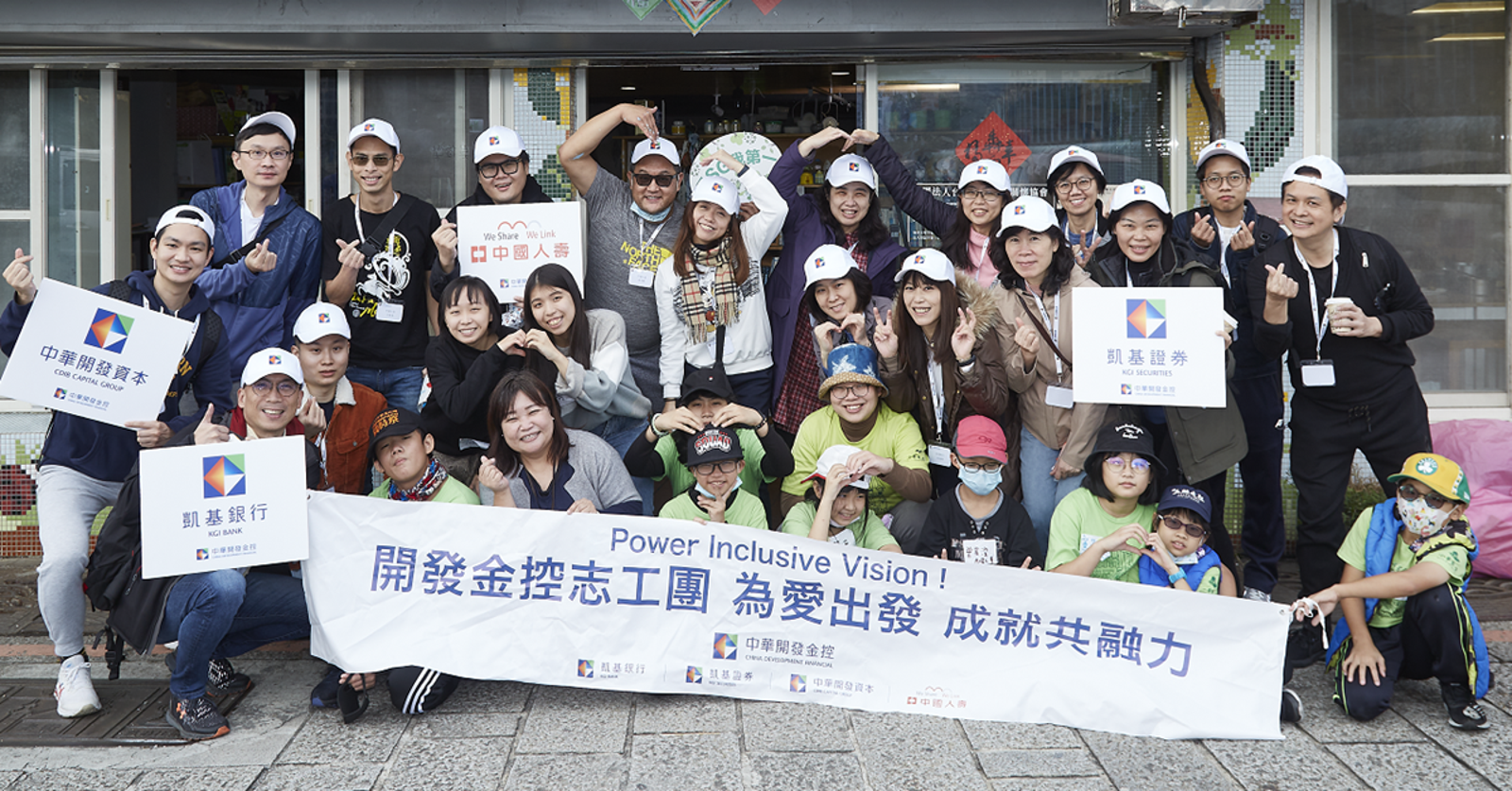 為了回饋社會,開發金控旗下中華開發文教基金會、凱基慈善基金會,以及集團志工,長期投入社會公益,推動共融力計畫(Inclusive Vision),致力於達成青銀共創、與長者共樂、與弱勢共好、與環境共生的目標,成就共融共好社會。