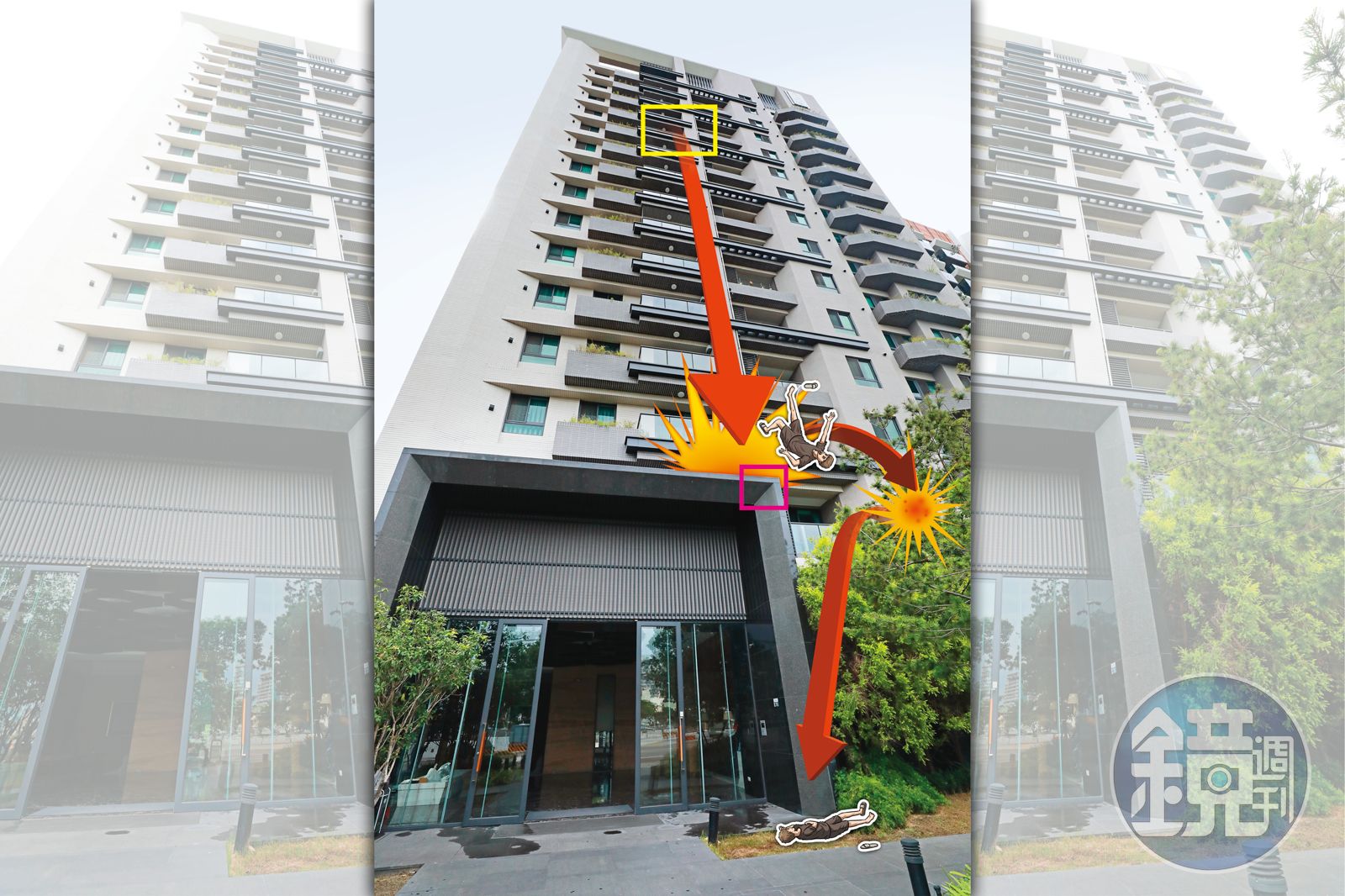 本刊掌握,檢警依照科學採證的客觀事實,羅列10大理由排除他殺,首先,最關鍵的是鑑識人員在案發現場,即10樓陽台的鑄鐵欄杆外緣處,採集到賴男汗漬及皮屑組織等生物跡證,加上欄杆下方雨遮沉積的灰塵有明顯刮擦痕,不排除是人為踩踏所致,專案小組研判賴男爬過鑄鐵欄杆後墜樓。