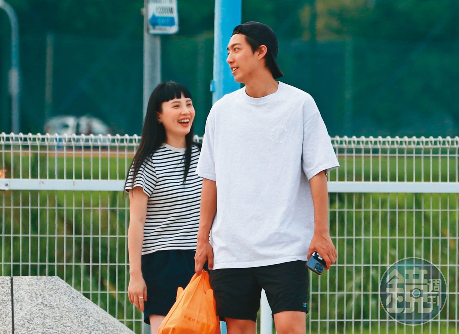 5/5 15:14 魏如萱(右)出門購物,手上一袋橘色的戰利品,是從寵物店來的。5月5日的下午,本刊拍到魏如萱出了家門,到了附近寵物用品店和平價百貨店購物;結束之後,她提了個橘色塑膠袋,親切地幫粉絲簽完名之後,竟叫了輛多元計程車,載她回到距離約650公尺的住處,緊接著她又去接小孩,才再次返家。