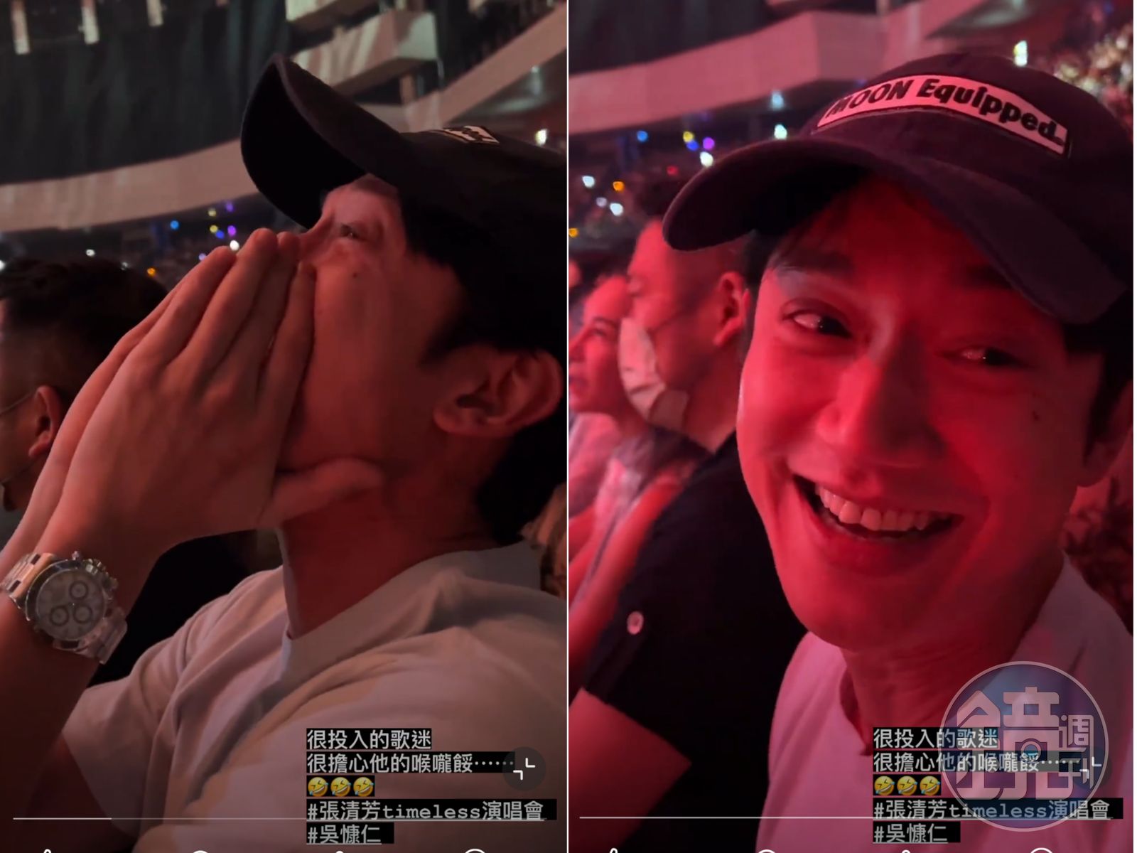 楊謹華在IG限動發的影片中,台上張清芳高歌〈燃燒一瞬間〉,台下吳慷仁也賣力跟唱「我點起心中那片熊熊火焰,燃燒一瞬間。我願愛你用我每一個今天,相信…」,唱到這裡吳慷仁停下來哀號:「唱不上去了!」之後又抱胸陶醉接唱「日日夜夜放縱眷戀…」,整個人完全投入在演唱會的氣氛中。