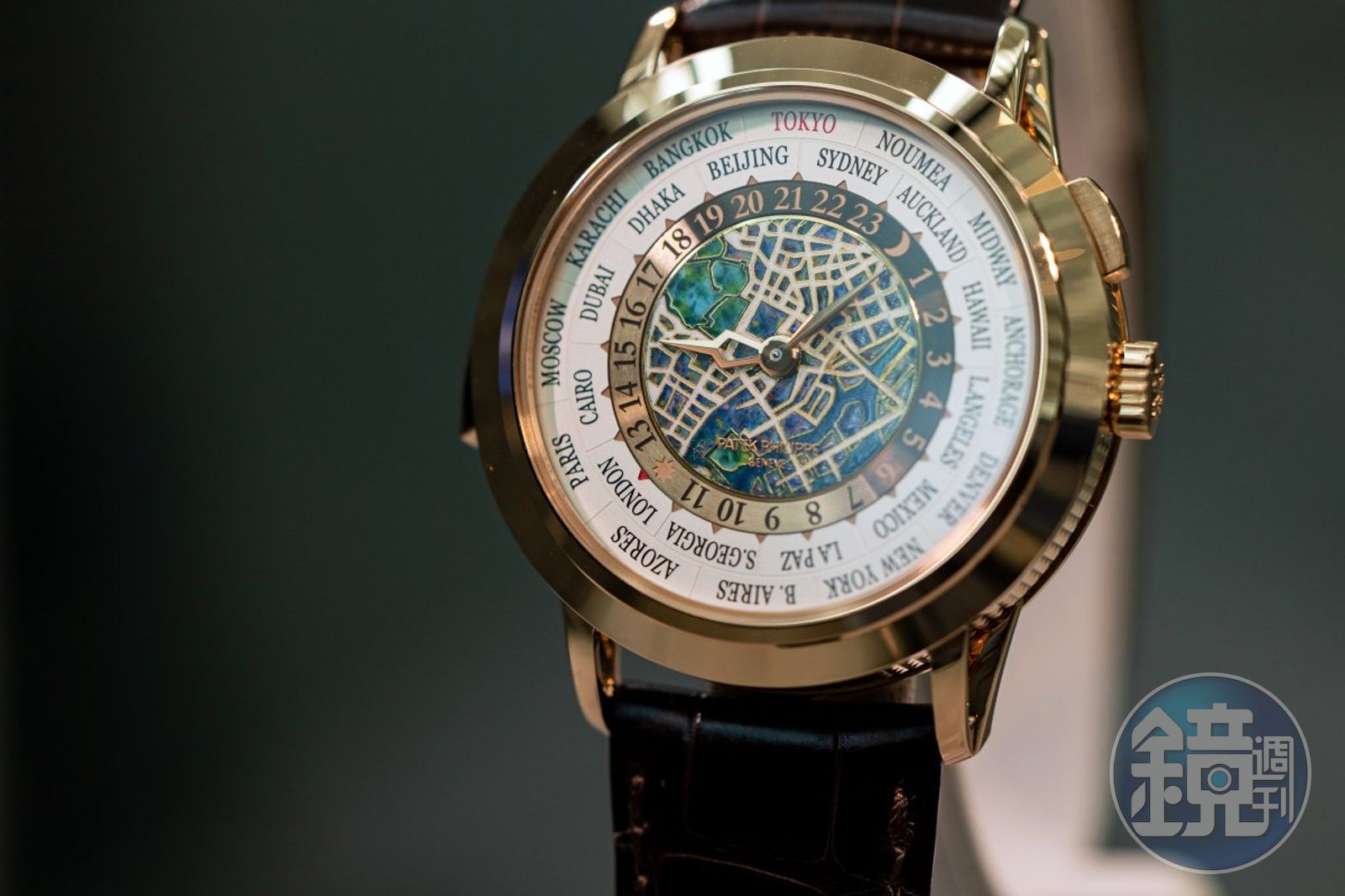 另一款5330G-010腕錶,則是錶壇第一款具備與當地時間同步顯示日曆功能的世界時間腕錶,此錶特色在於開發出獲專利的「日期差動系統」(Differential system for the date),讓面盤外環的日期顯示,可以在跨時區飛行時,隨著世界時區環的轉動,而自動前後轉動顯示正確的日期。