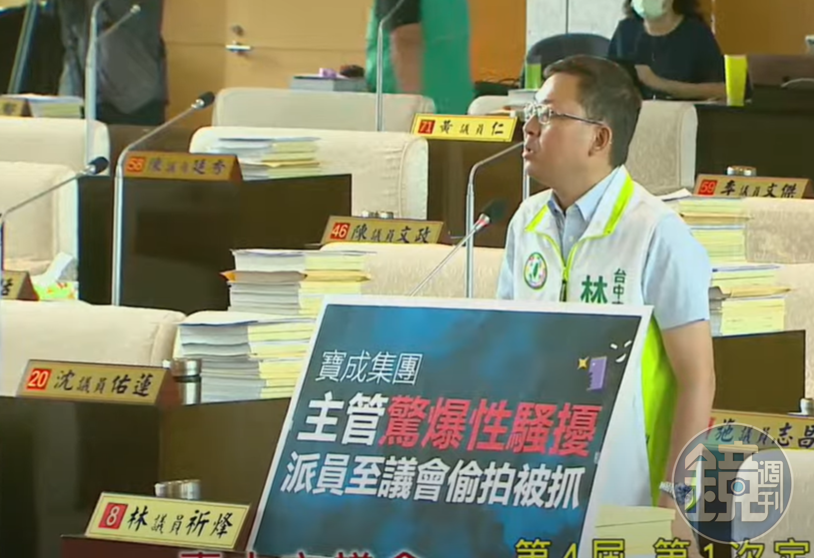 林祈烽指出,有陳情人向他陳情遭到羊曉東性騷,因此日前有受害人來到他的研究室,進行性平訪談。但林祈烽公布監視器畫面表示,有集團員工被派來他的研究室外,徘徊偷拍至少5小時,並一路尾隨、偷拍、監聽研究室的所有人與對話。林祈烽痛批,這已讓受害人心生畏懼,也造成二度傷害。林祈烽也說,後來議員辦公室報警處理,這名偷拍者依妨害秘密罪嫌函送地檢署偵辦。