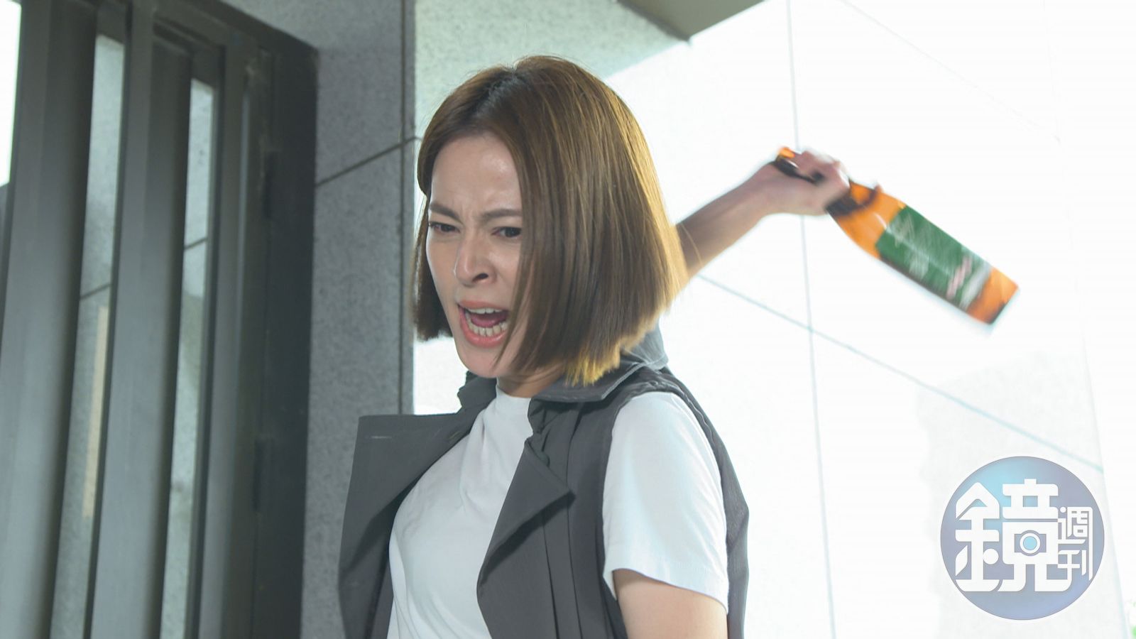 蘇晏霈將狠狠修理負心漢曾子益。(民視提供)蘇晏霈表示,現在飾演的角色最重要就是先復仇,雖然拍打戲很累,但每次拍完全身都濕透,好像做了激烈運動一樣,也是一兼二顧維持身材的好方法。