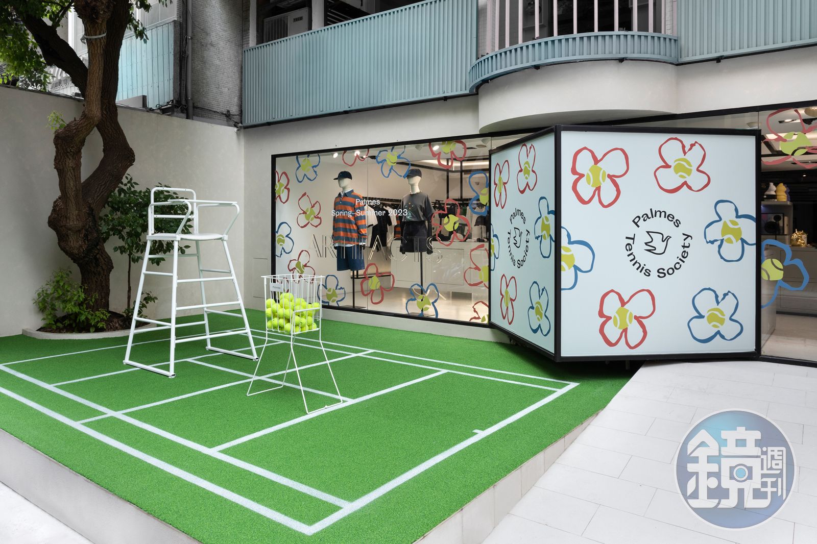 ARTIFACTS x PALMES獨家快閃店將露台區改造成迷你網球場。(ARTIFACTS提供)發布時間:2023.06.16 20:55 臺北時間