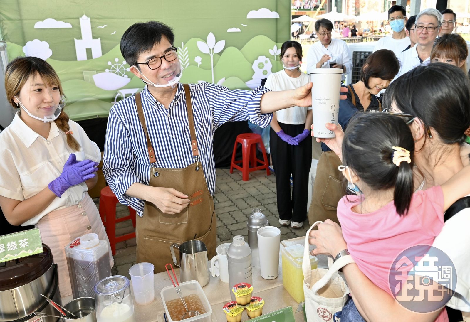 高雄市長陳其邁宣布,7月至9月優惠日期間,民眾若自備環保杯於高雄市內至合作飲料店消費可再享優惠。(翻攝陳其邁臉書)發布時間:2023.06.19 09:35 臺北時間