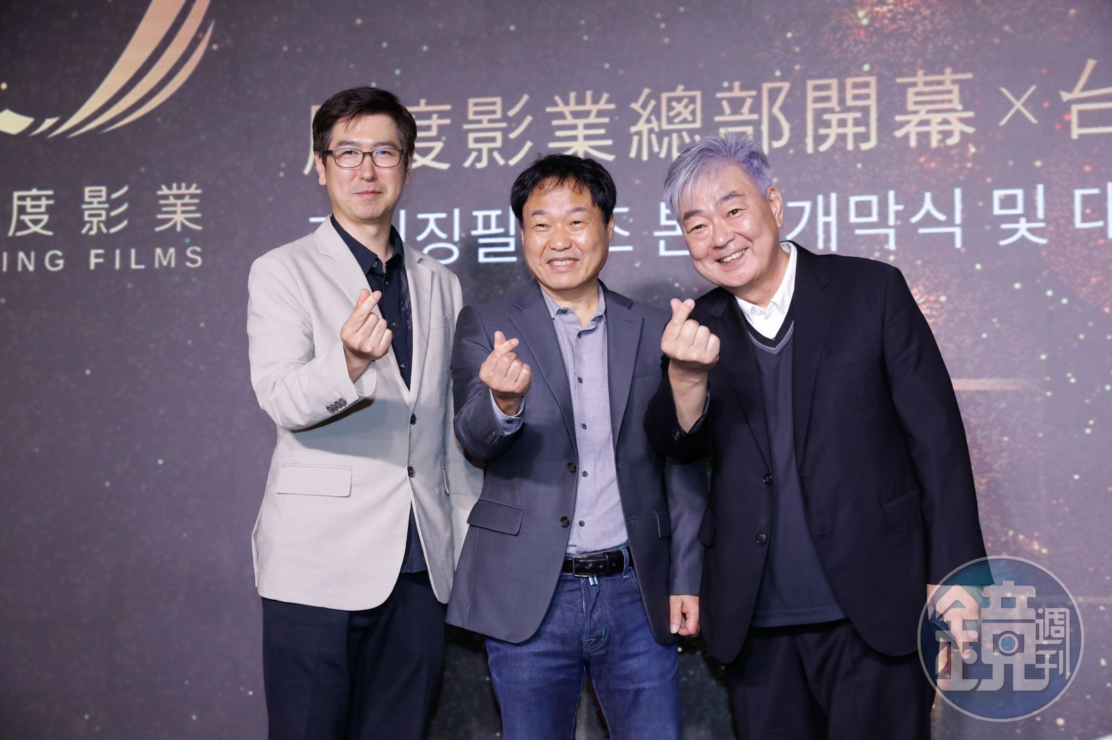 吳相昊(左)編寫的愛情故事《天堂計畫》將由台灣風度影業投資製作,並請到《我的野蠻女友》導演郭在容執導(中),右為監製金亨駿。發布時間:2023.06.27 05:58 臺北時間