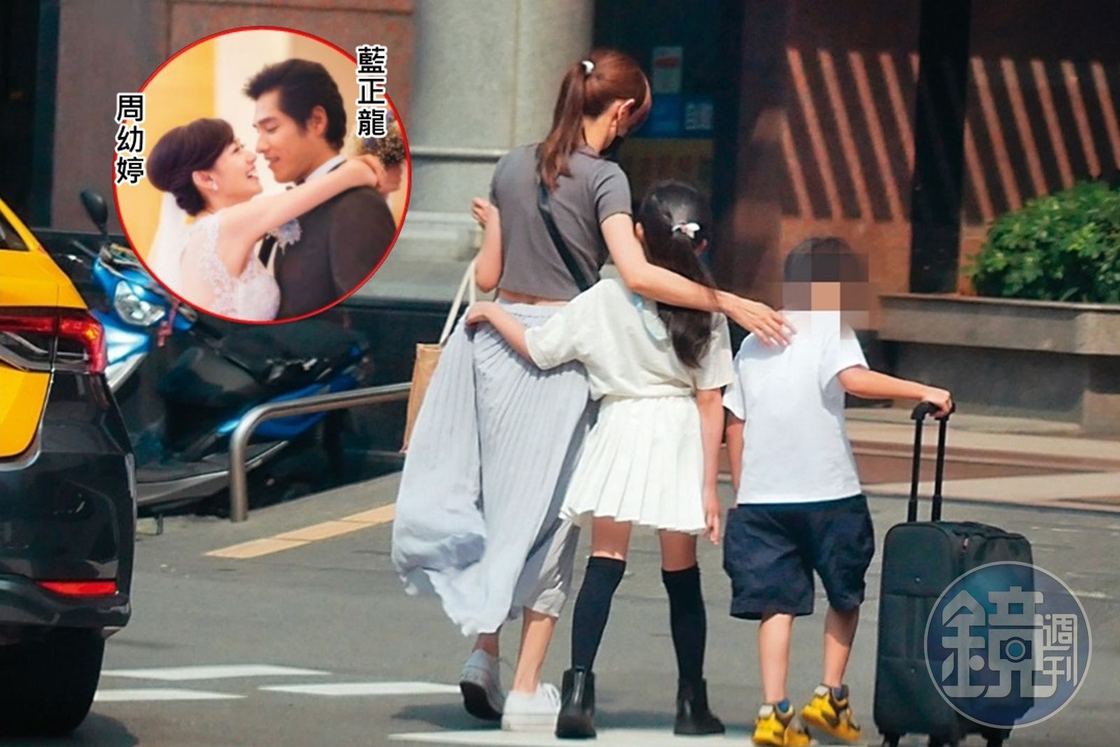 6月24日 14:59 周幼婷帶孩子回家,兒子拖著小行李箱,女兒摟著討抱。(小圖翻攝自Joanna Wedding 經典婚紗臉書)發布時間:2023.06.27 14:41 臺北時間
