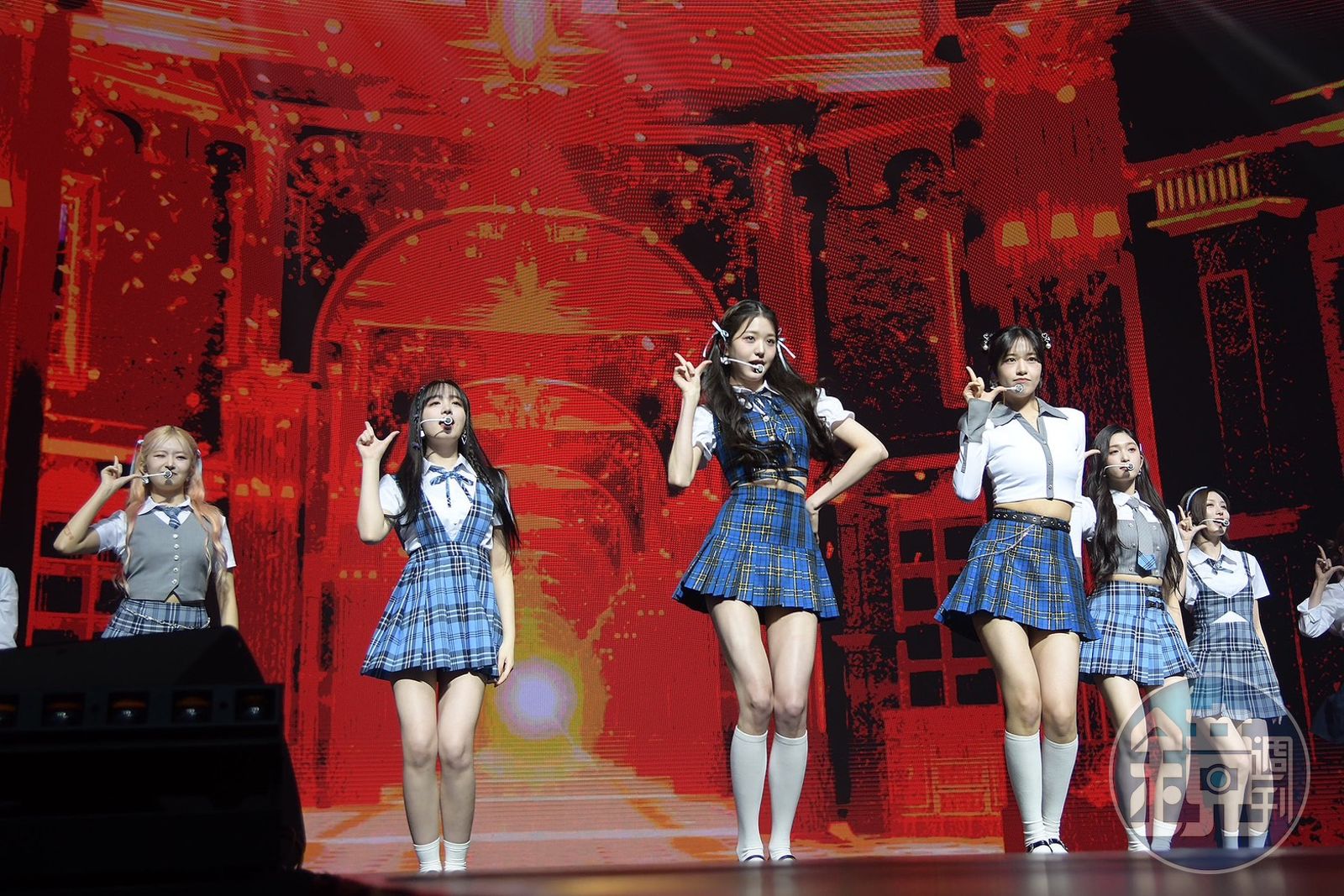 雖然IVE兩天表演曲目一樣,但遊戲環節都很投入,玩「妳畫我猜」時Rei被粉絲稱讚是畫畫小天才,張員瑛和李瑞在規定時間內10題都答對開心到抱在一起,也戴起公主皇冠和可愛頭飾一起「走秀」,有趣的是,張員瑛中途不小心滑落了皇冠,幸好她手腳很快抓住皇冠再戴回頭上,其他四位成員戴著兔耳朵頭飾在一旁觀禮祝福,形成另一幅可愛景象。