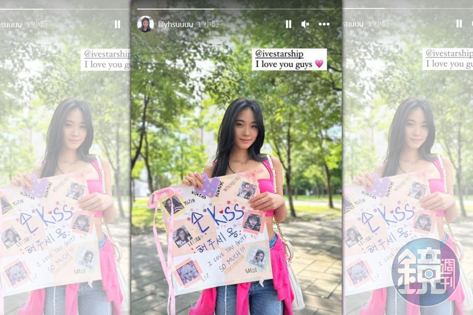 Lily稍早在Instagram分享自己去看演唱會的認證照,手上舉著告白應援板寫道:「請給我飛吻!我超喜歡妳們!」板子上還特地貼了6位成員的美照,並以蝴蝶結等粉嫩飾品做裝飾,化身小迷妹。她的穿搭也非常吸睛,亮桃色小可愛搭配牛仔褲,一雙長腿搭配螞蟻腰,身材不輸女團。