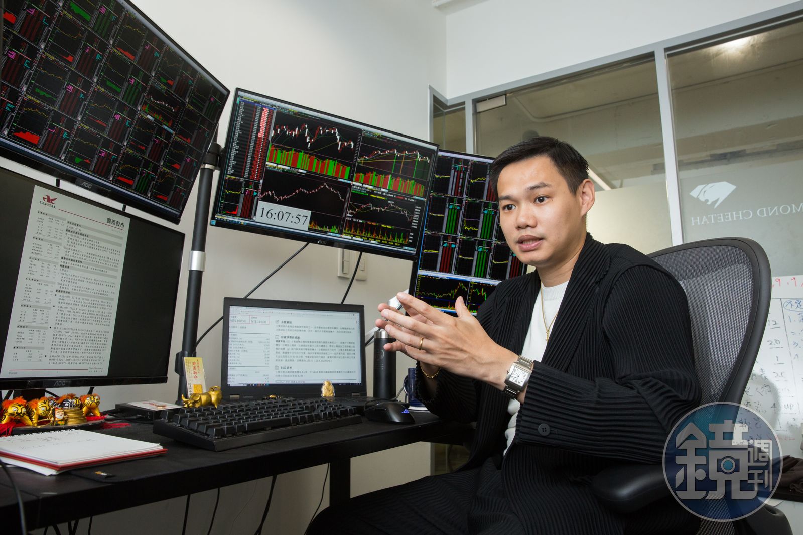 他解釋,當看好一間公司並買進時,只要日後季報營收優於預期,他就會上調獲利目標、也上調目標價;反之,若公司產品出現質變、公司盈轉虧,會適時調節部位出場,此外,進場後若股價從高檔修正2成,也會立即出場。