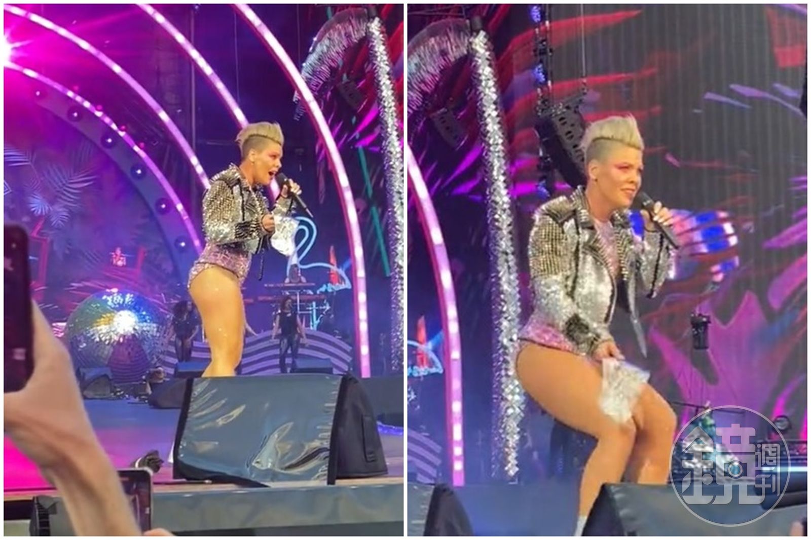 紅粉佳人(P!nk)疑似收到狂粉仍上台的亡母骨灰,令台上的她有些錯愕。(翻攝自推特)發布時間:2023.06.27 20:39 臺北時間