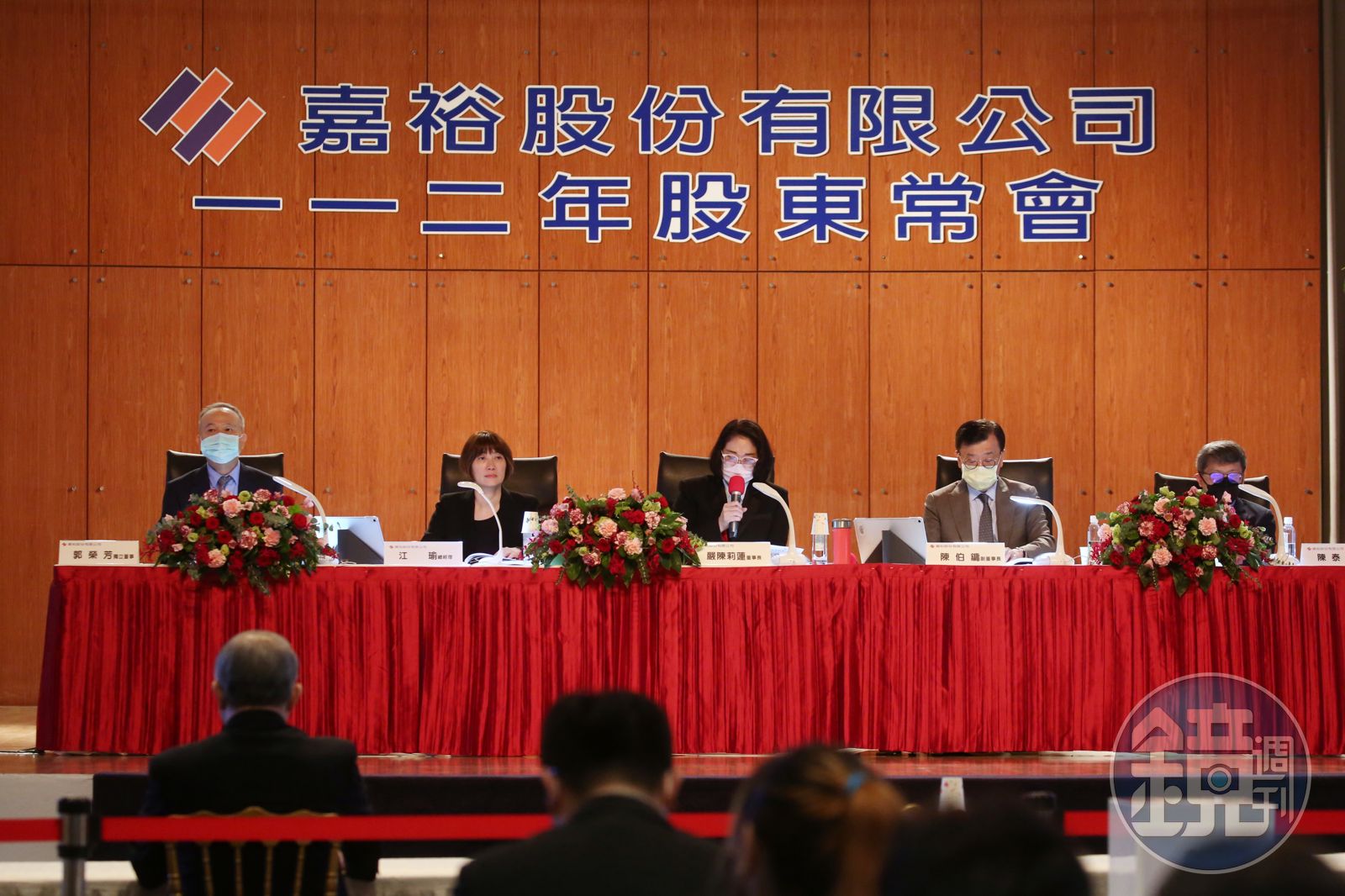 「雖然未來仍充滿變數,但我們有信心面對挑戰,讓50多年歷史的嘉裕持續發光。」今嘉裕股東會上,董事長顏陳莉蓮向所有參加的股東們掛保證。