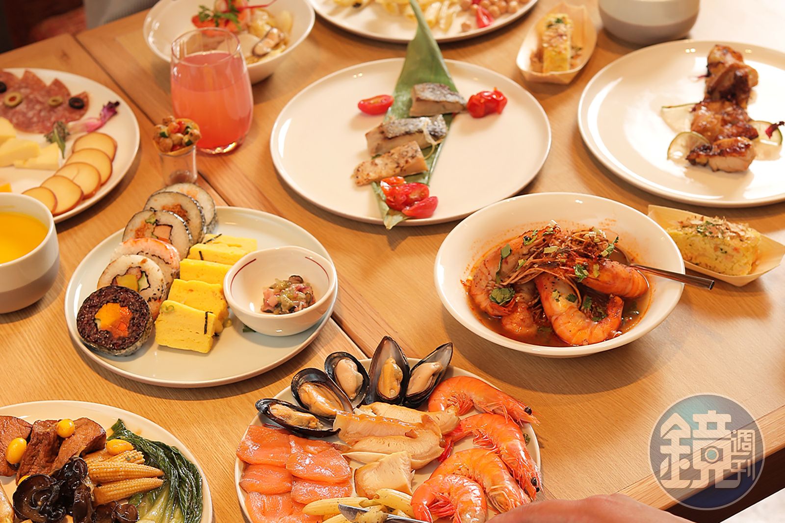 除此之外,在餐台上還能大啖關西傳統正宗的一口吃的海鮮大阪燒,讓味蕾就像一秒飛到日本;自助餐也同時呈上極具台灣味的傳統米糕、飄香府城的台式碗粿。