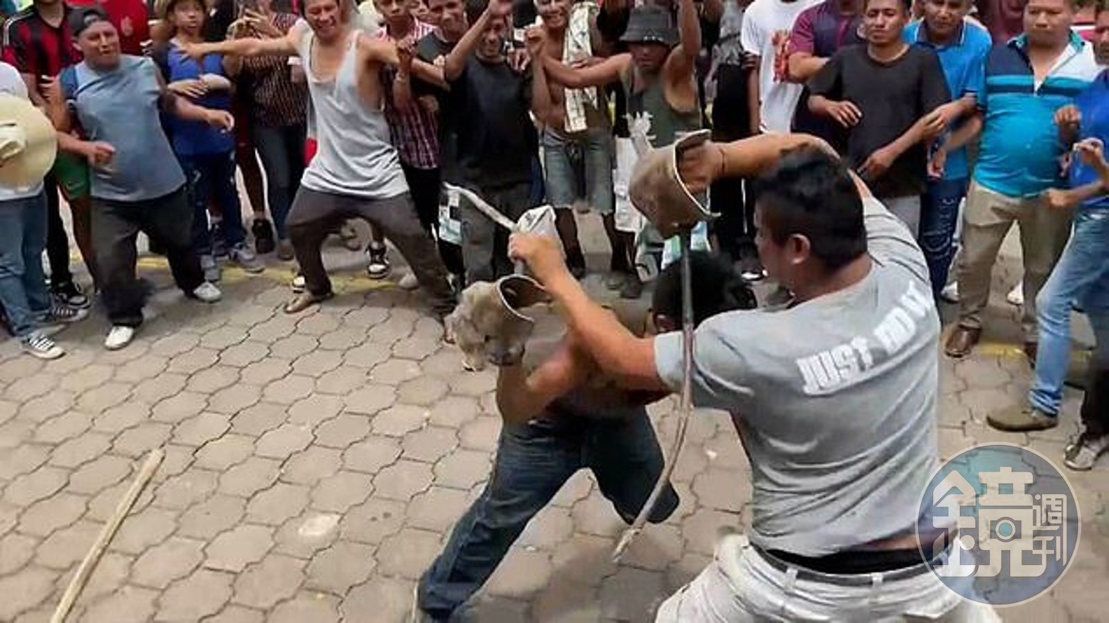 其中最特殊的一項儀式,就是民眾使用曬乾的牛鞭製成寶劍,並互相「屌打決鬥」。通常多以男性參加為主,所有參加者都沒有穿著護具,甚至上空的狀態下互相「鞭數十」,但可不要小看這牛鞭屌打,其實很容易造成對方皮開肉綻的傷勢。報導也指出,只要哪一方到最後高舉牛鞭劍,就是代表認輸,決鬥大賽也會跟著結束。