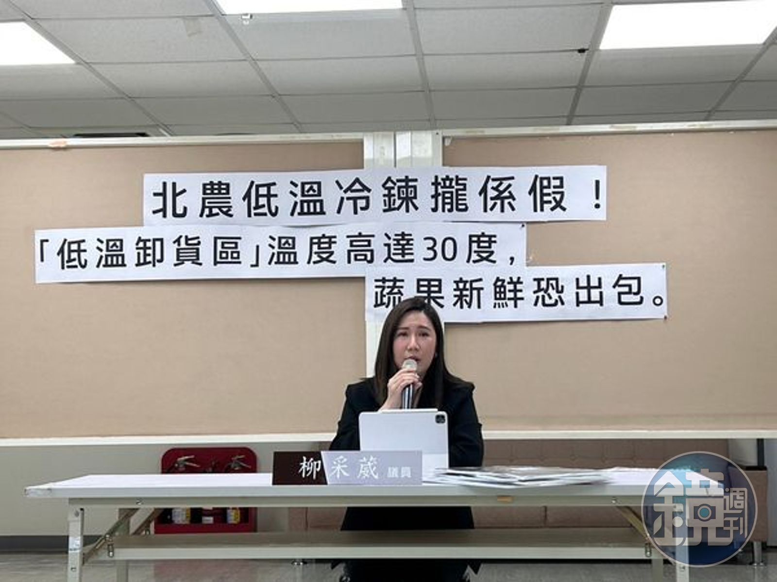 結果才過半年,柳采葳表示自己發現「北農低溫冷鏈」都是假的!她指出,「低溫卸貨區」內溫度高達30度,與維持蔬果最佳溫度在15度至18度的標準相距甚遠,北農根本無法如自己所稱「提供最新鮮蔬果給市民」。