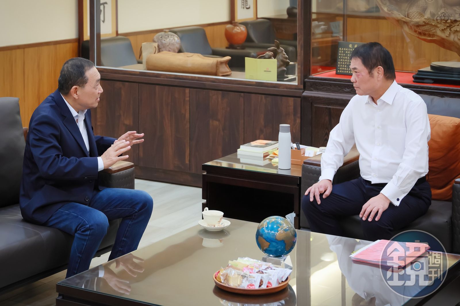今侯友宜率領新北市府到苗栗縣政府拜會,針對農產、觀光等議題進行交流,期望未來新北與苗栗可以一起合作共好。
