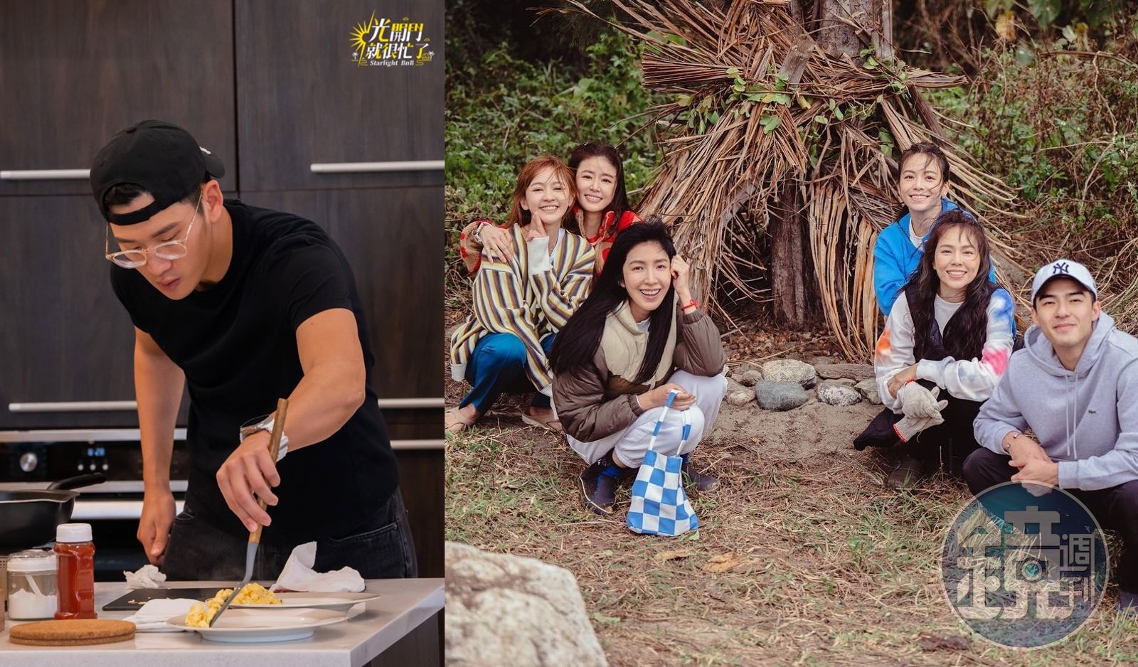 周興哲在實境秀《光開門就很忙了》大展廚藝,首集帶來賓宋芸樺(右三)、夏于喬(右二)體驗幫寄居蟹蓋房子。(TVBS提供)發布時間:2023.06.30 13:37 臺北時間