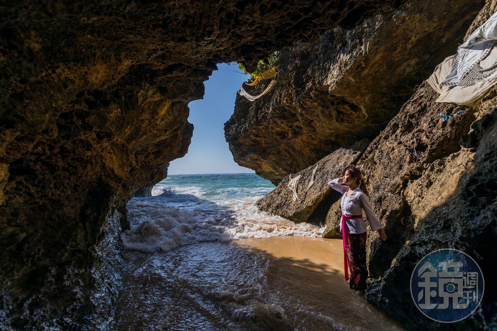這天先是起個大早做一個小時的沙灘瑜伽,接著換上酒店提供的傳統服飾,先不說那合身到不行的剪裁設計,讓我不得不成為半日的「小家碧玉」,搭上酒店接駁車之後,才是「奇幻旅程」的開始。去到距酒店不遠的海邊,耆老祭司來接應,順著石階向下,竟抵達礁岩間一座已完成供品和鮮花布置的祭壇。