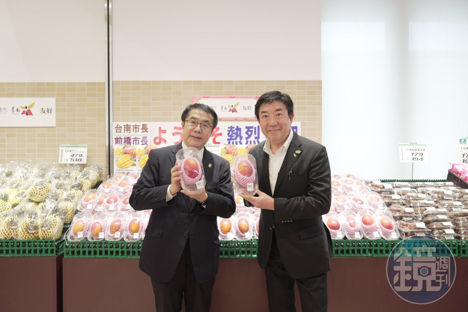 黃偉哲市長也轉赴Tsuruya超市在前橋的分店視察台南芒果上架情形,並親切跟前來選購的當地消費者互動。黃偉哲4月赴東京時,特別與這間在日本創業127年的老字號連鎖超市當面洽談,進而媒合促成台南的鳳梨、芒果接力在該超市上架,頗獲消費者青睞。