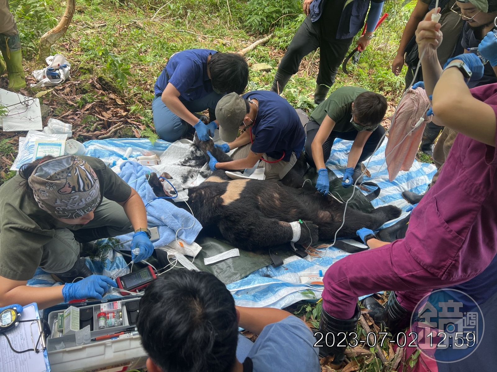 花蓮林管處指出,受困黑熊為84公斤之成年黑熊,其左前肢腕部關節因遭套索壓迫腫脹,但無開放性傷口,亦無斷指,野灣獸醫師為避免患肢持續腫脹而壞死,因而在現場施行清創手術,並後送至位於台東池上的東部野生動物救傷中心暫留觀察傷勢。花蓮林管處再次呼籲,若發現野生動物受困,請即刻撥打林務局24小時通報專線0800-000-930或花蓮縣縣民專線1999。若不慎誤捕或誤傷保育類野生動物,只要立即通報、協助救援,就不會被究責。