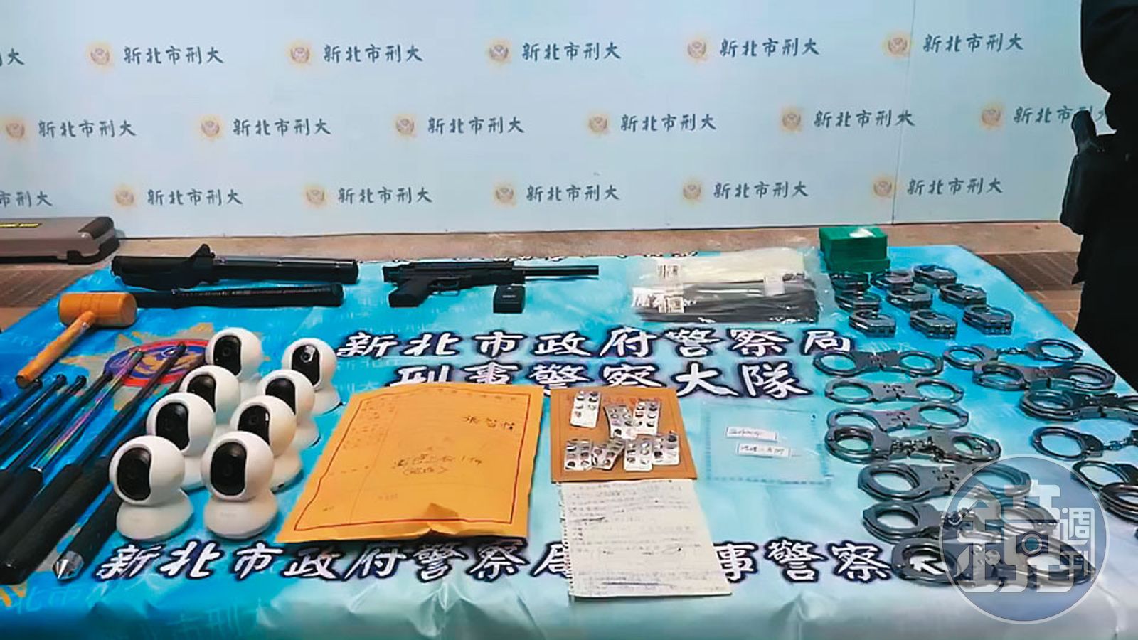 警方查扣詐團的做案工具,數量眾多擺滿整桌。(警方提供)發布時間:2023.07.05 05:58 臺北時間