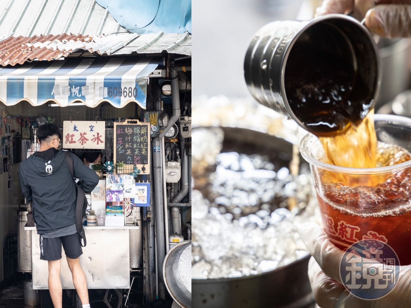 才早上11點,「拍謝啦!賣完了。」店長陳淑美在短短5分鐘內,對著前來的客人說了不下10次。這家1966年開業的「太空紅茶冰」位於第五市場樂群街和自立街口,即使攤位迷你,卻能從排隊人龍一眼認出。