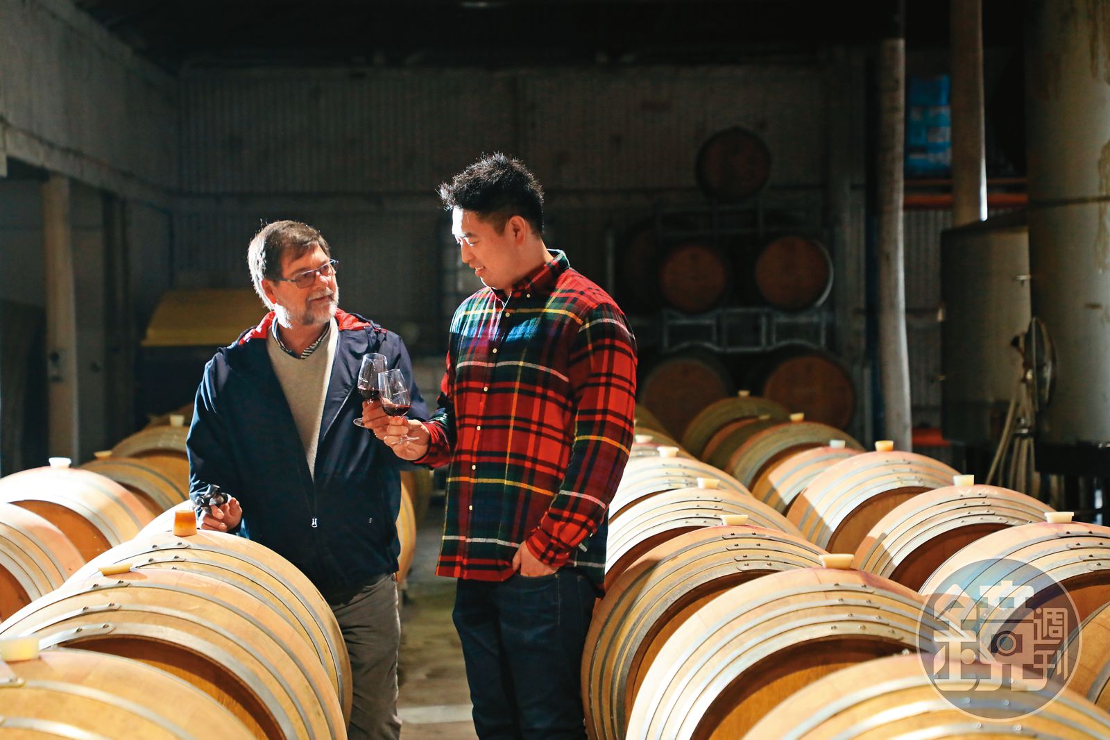 Hunter's Dream的紅葡萄品種以希拉(Shiraz)、長相思(Cabernet Sauvignon)為主,白葡萄則有榭密雍(Semillon)及夏多內(Chardonnay),而我們剛看到接近酒廠的全是白葡萄藤。剛在木桶中陳放數個月的葡萄汁,嘗起來酸中帶澀,卻是親身來到酒廠才能體會的滋味,也讓我更好奇陳年過後,它們又會變化成什麼口感?