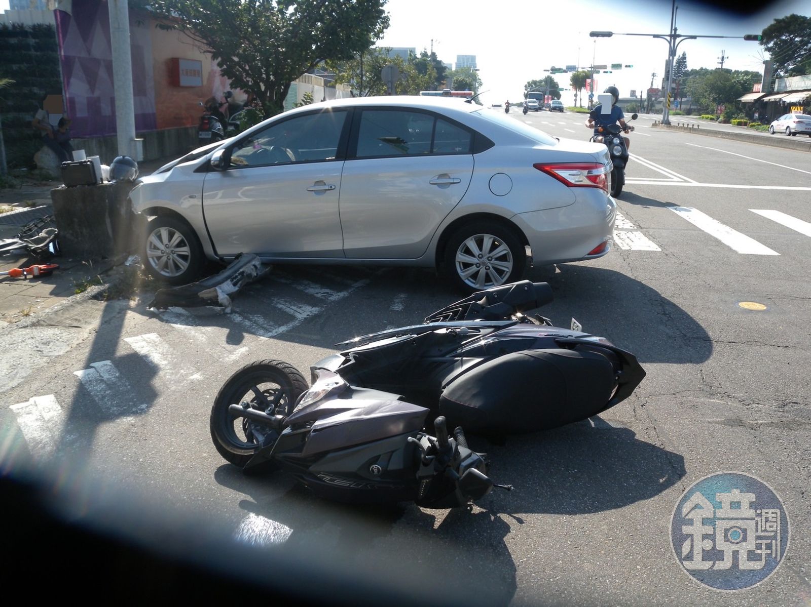 孫女肇事後未即時煞車,又直衝撞上另一名對向直行的20歲江姓騎士,江男遭重擊被撞飛落地,肇事者孫女所駕駛車輛也直至撞上路邊燈桿才停止。這起連還車禍造成2名騎士全身多處擦挫傷,2人緊急送醫治療,已無大礙,3人經檢測皆無酒駕。